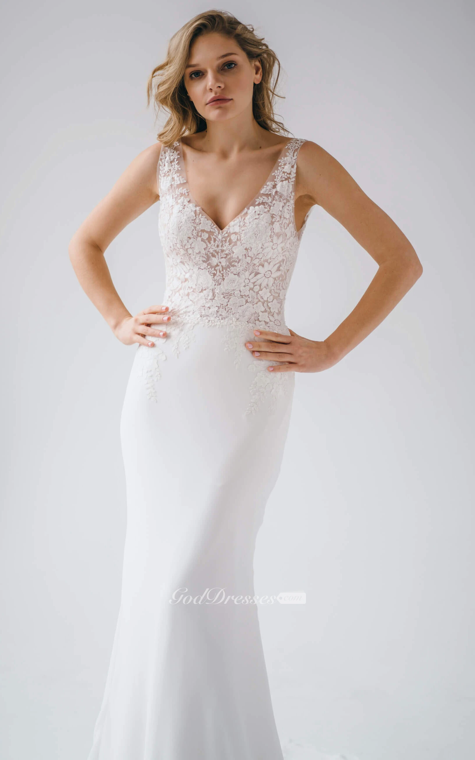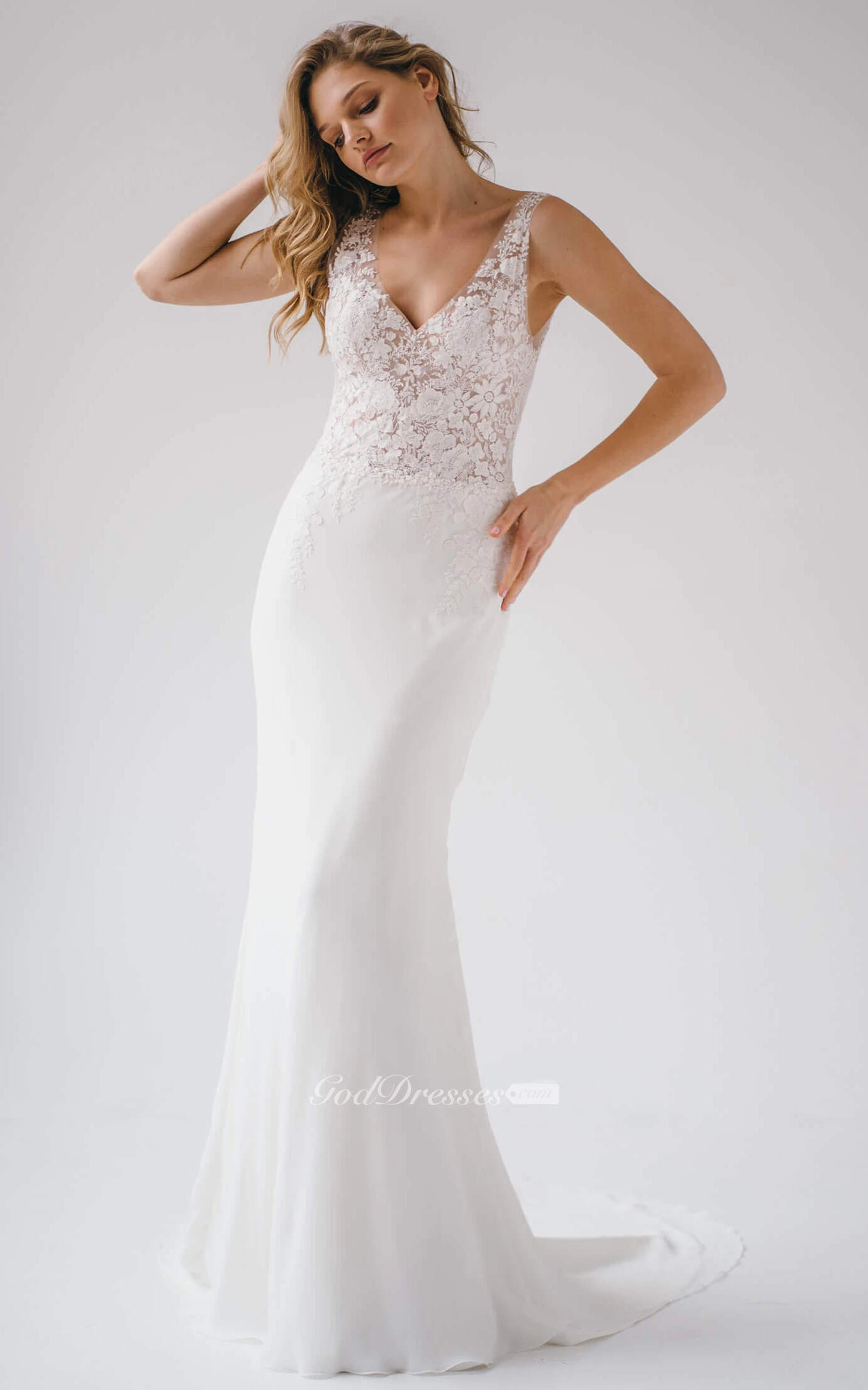 Elegant Mermaid Chiffon Floor-length Sleeveless Open Back Wedding Dress with Appliques