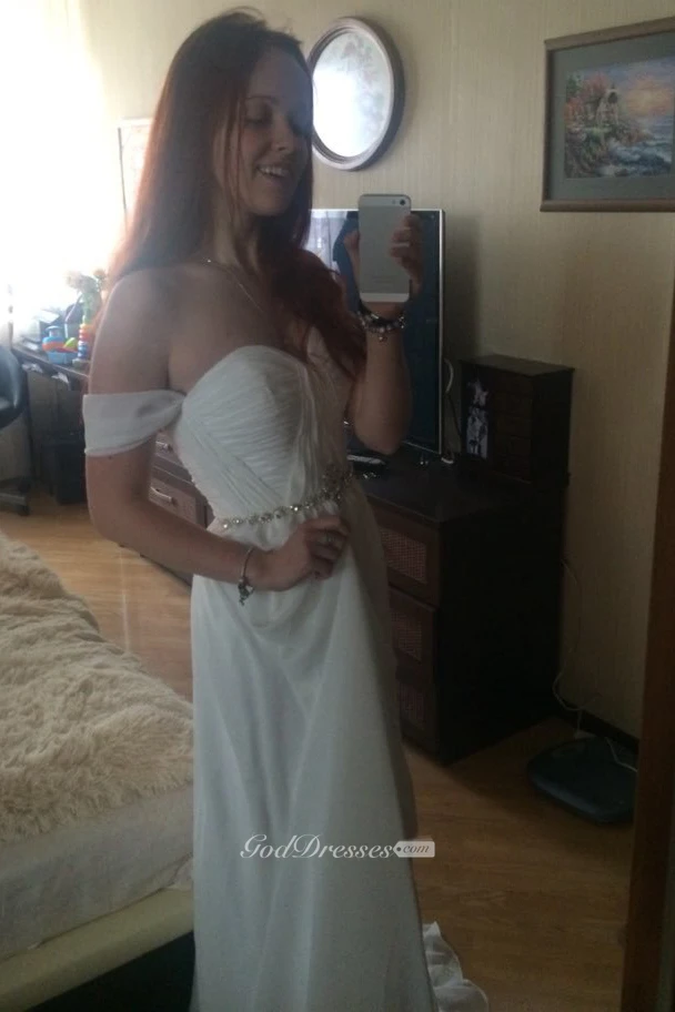 Elegant Off-shoulder Beading Sash Long Chiffon Wedding Dress Wedding Dresses