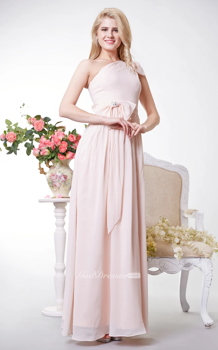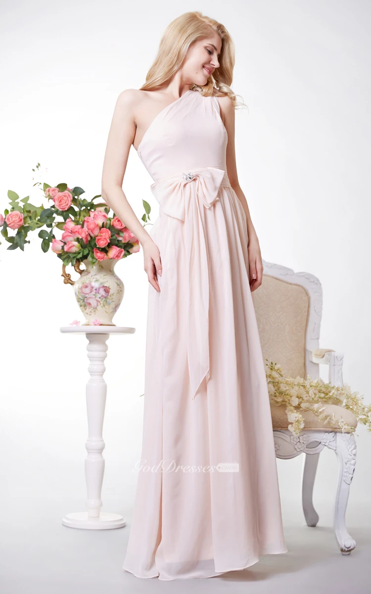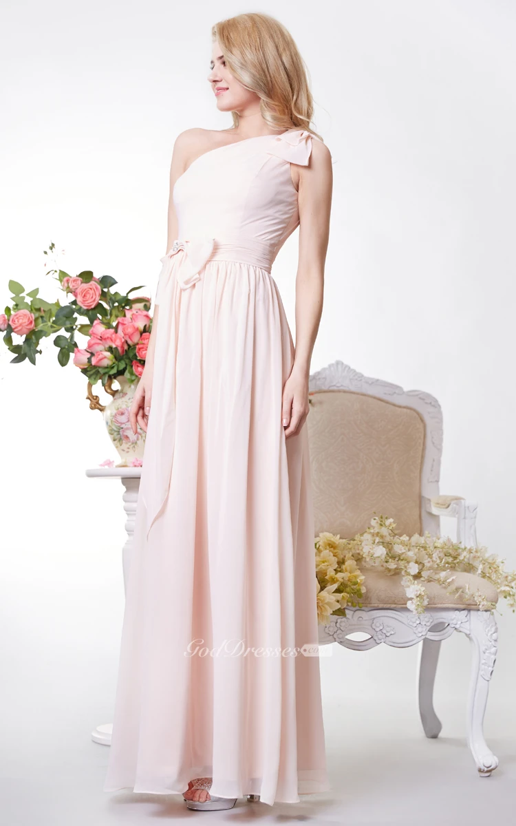 Elegant One-shoulder A-line Chiffon Gown With Bows