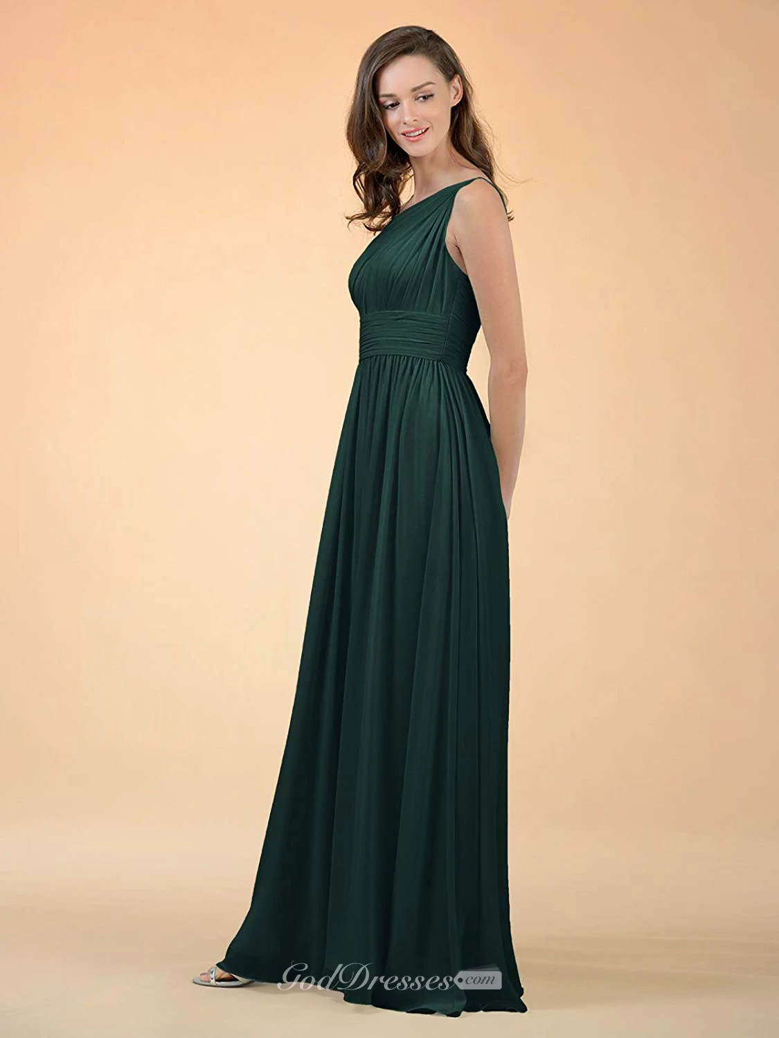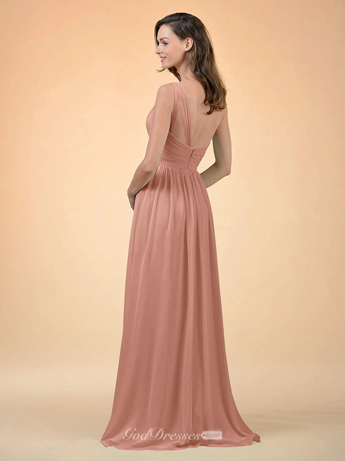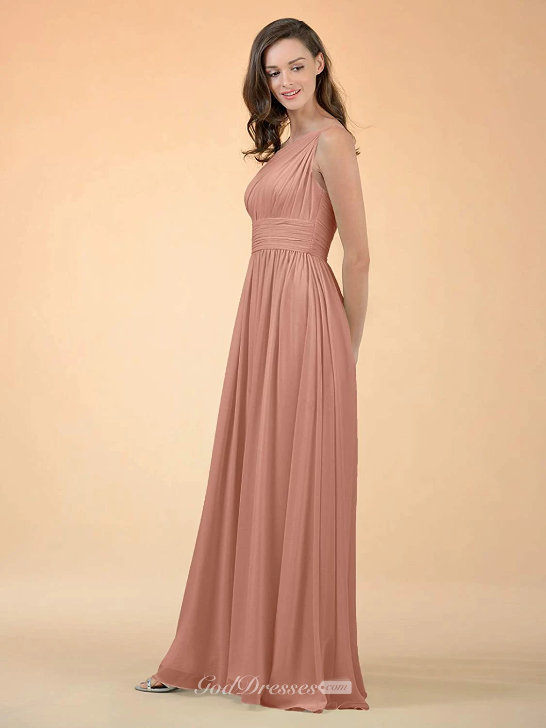 Elegant One-shoulder A Line Sleeveless Floor-length Chiffon Bridesmaid Dress With Ruching