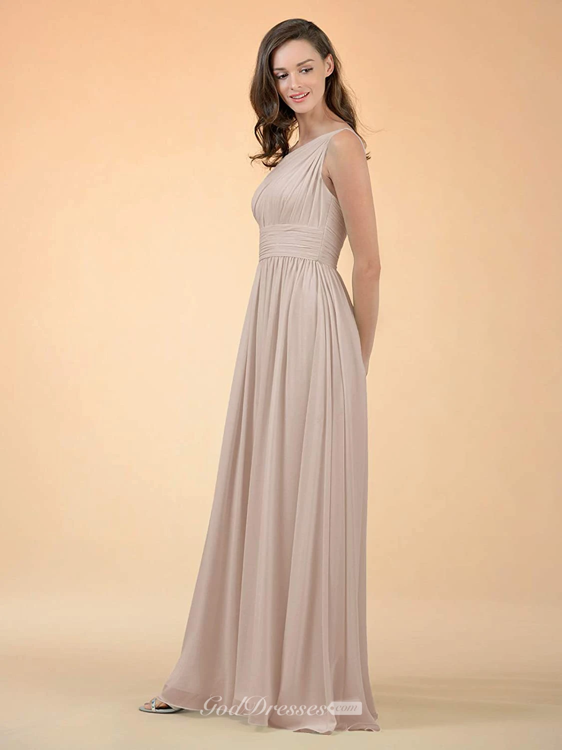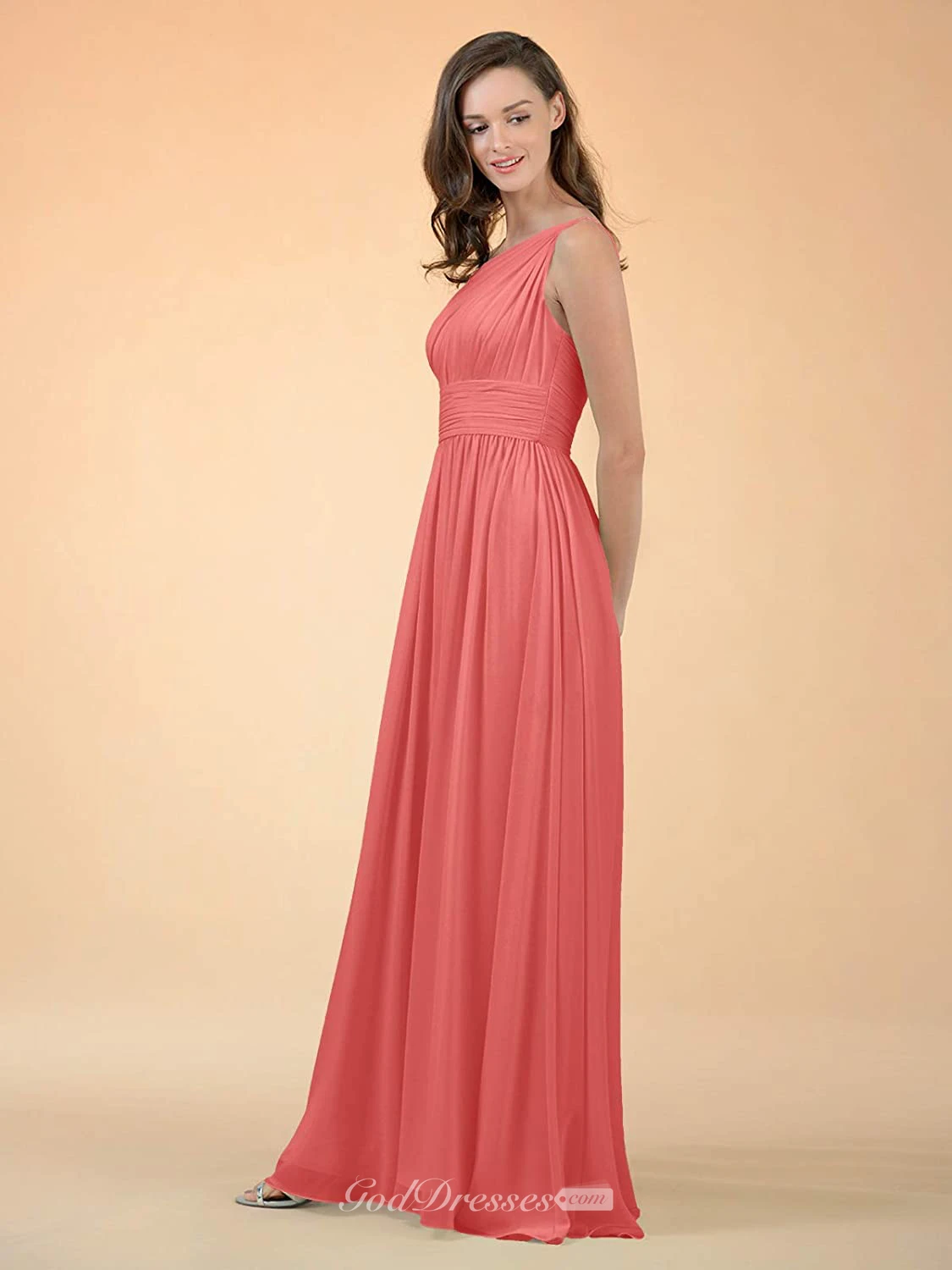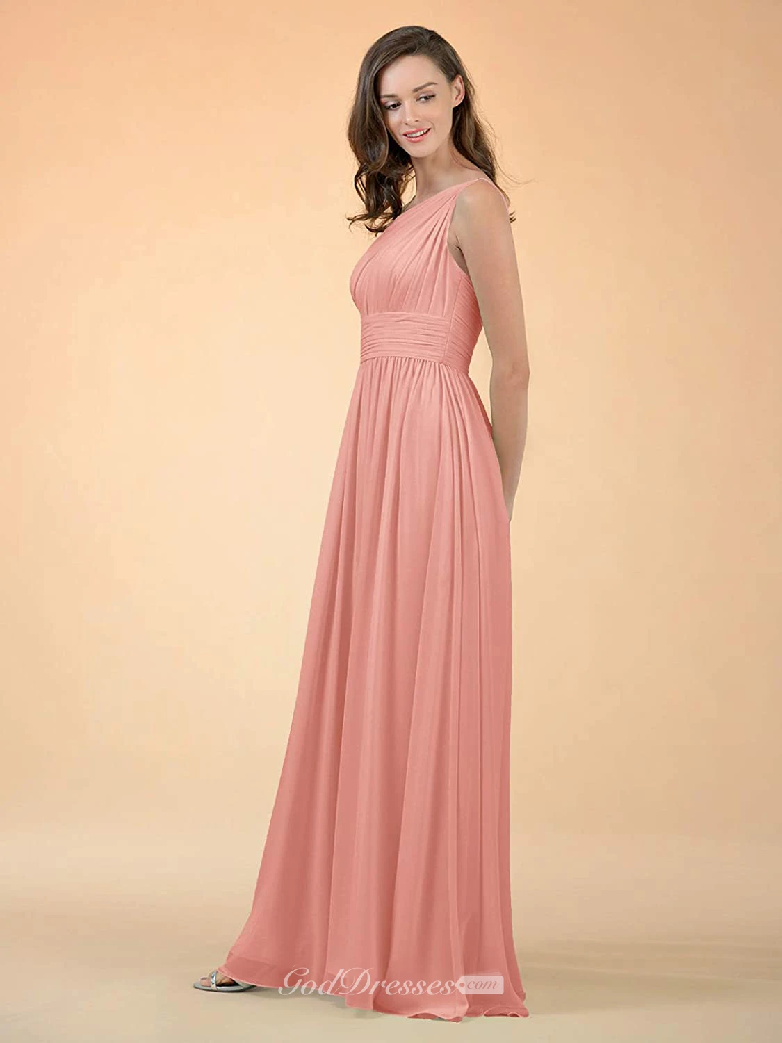 Elegant One-shoulder A Line Sleeveless Floor-length Chiffon Bridesmaid Dress With Ruching