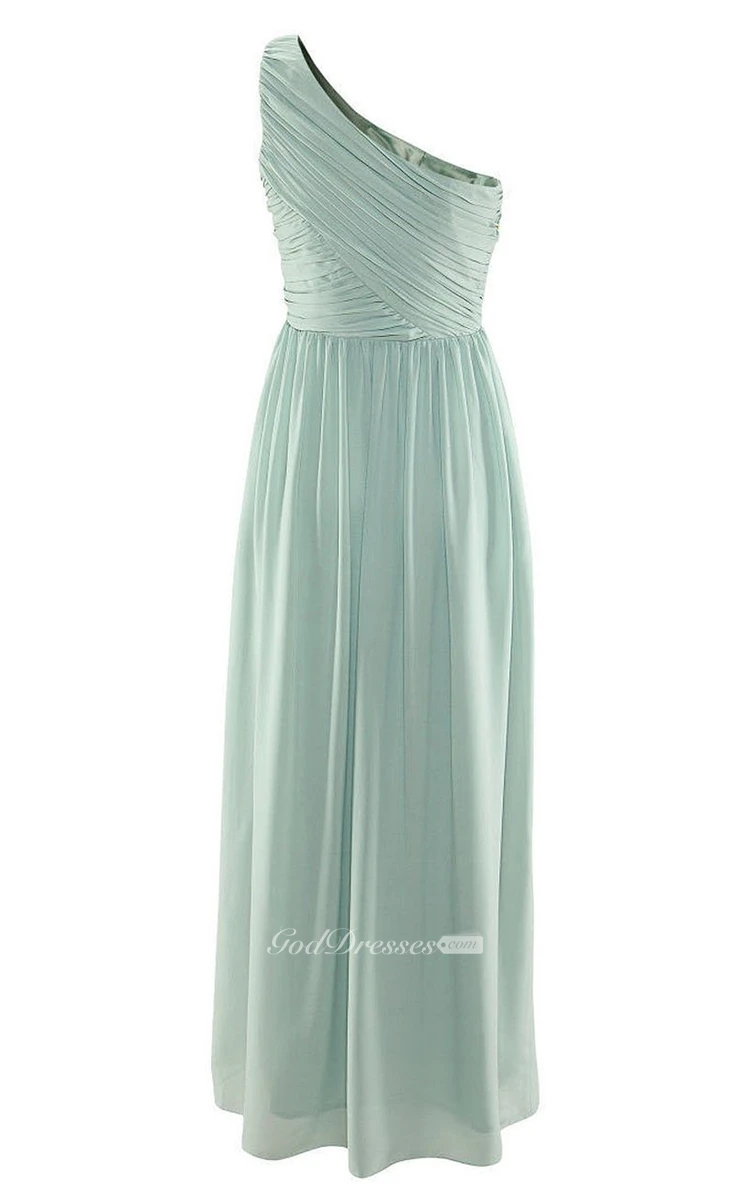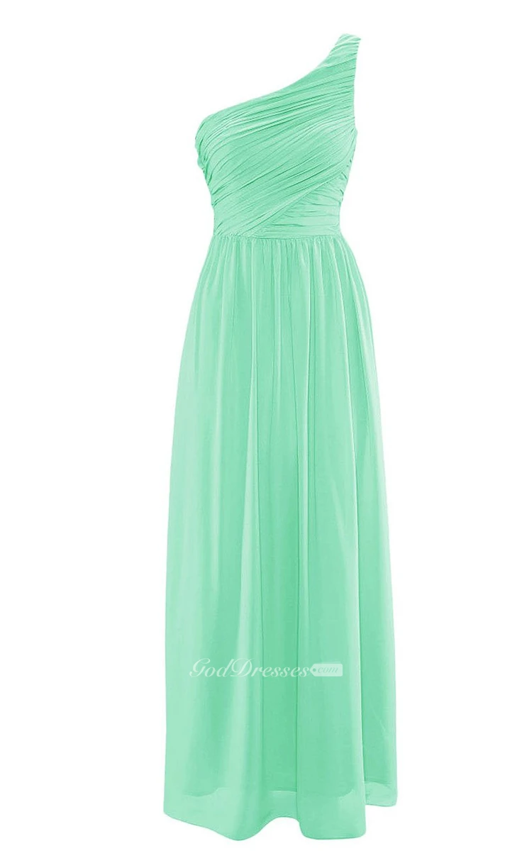 Elegant One-shoulder Ruched Chiffon A-line Gown