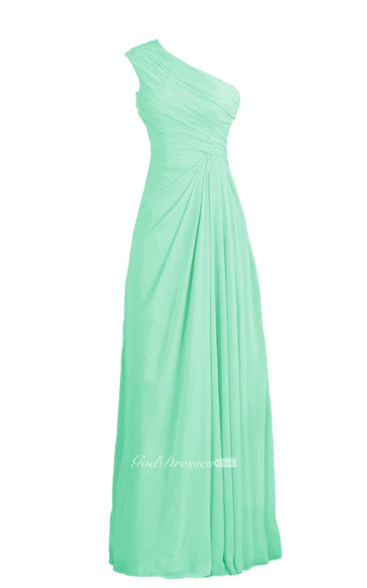 Elegant One-shoulder Side-drappping Chiffon A-line Gown
