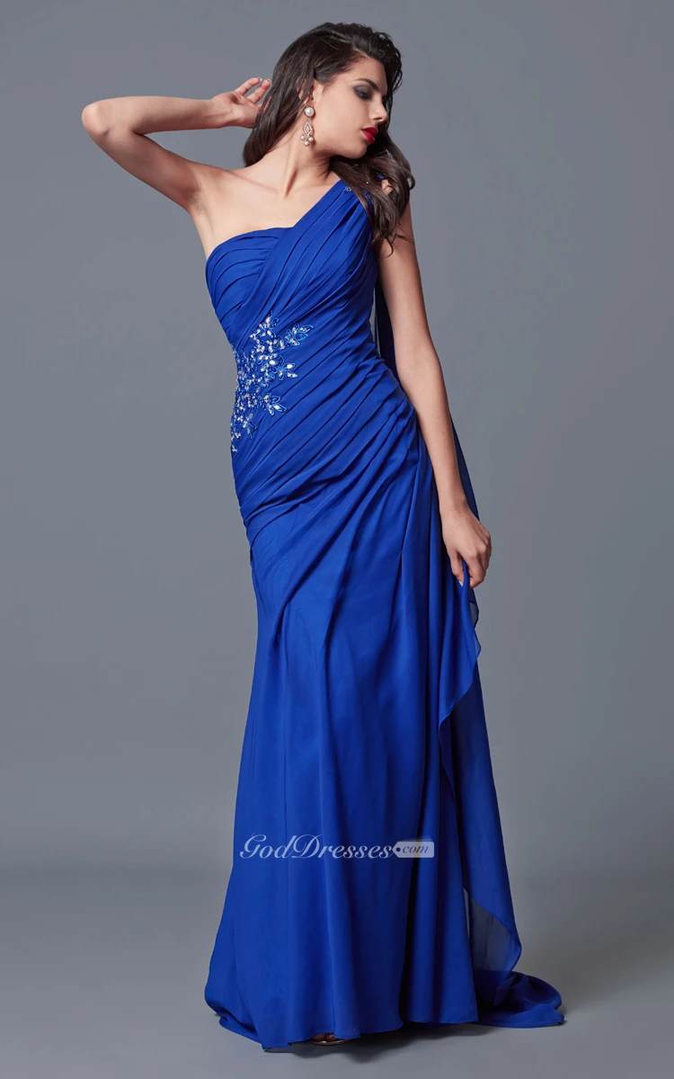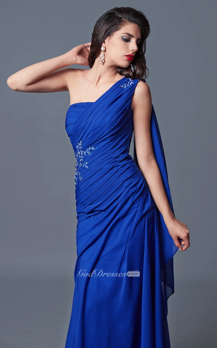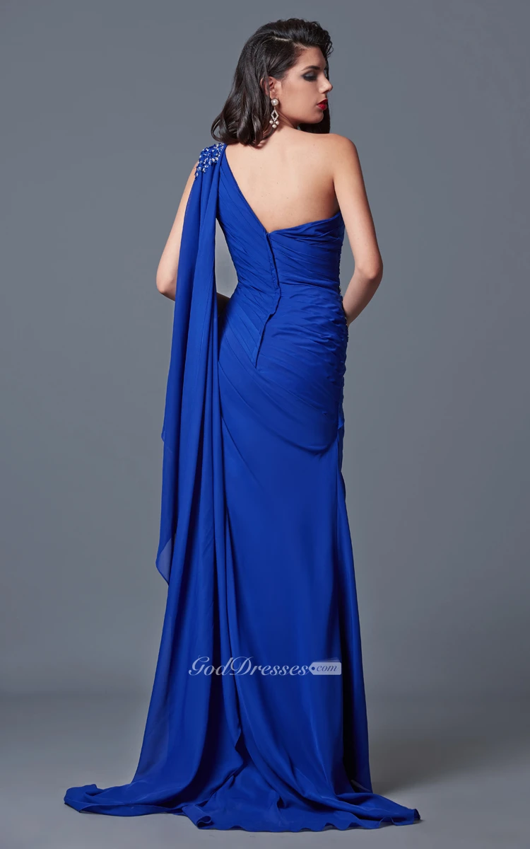 Elegant One-sided Soft-ruched Long Formal Mesh Dress With Shoulder Draping