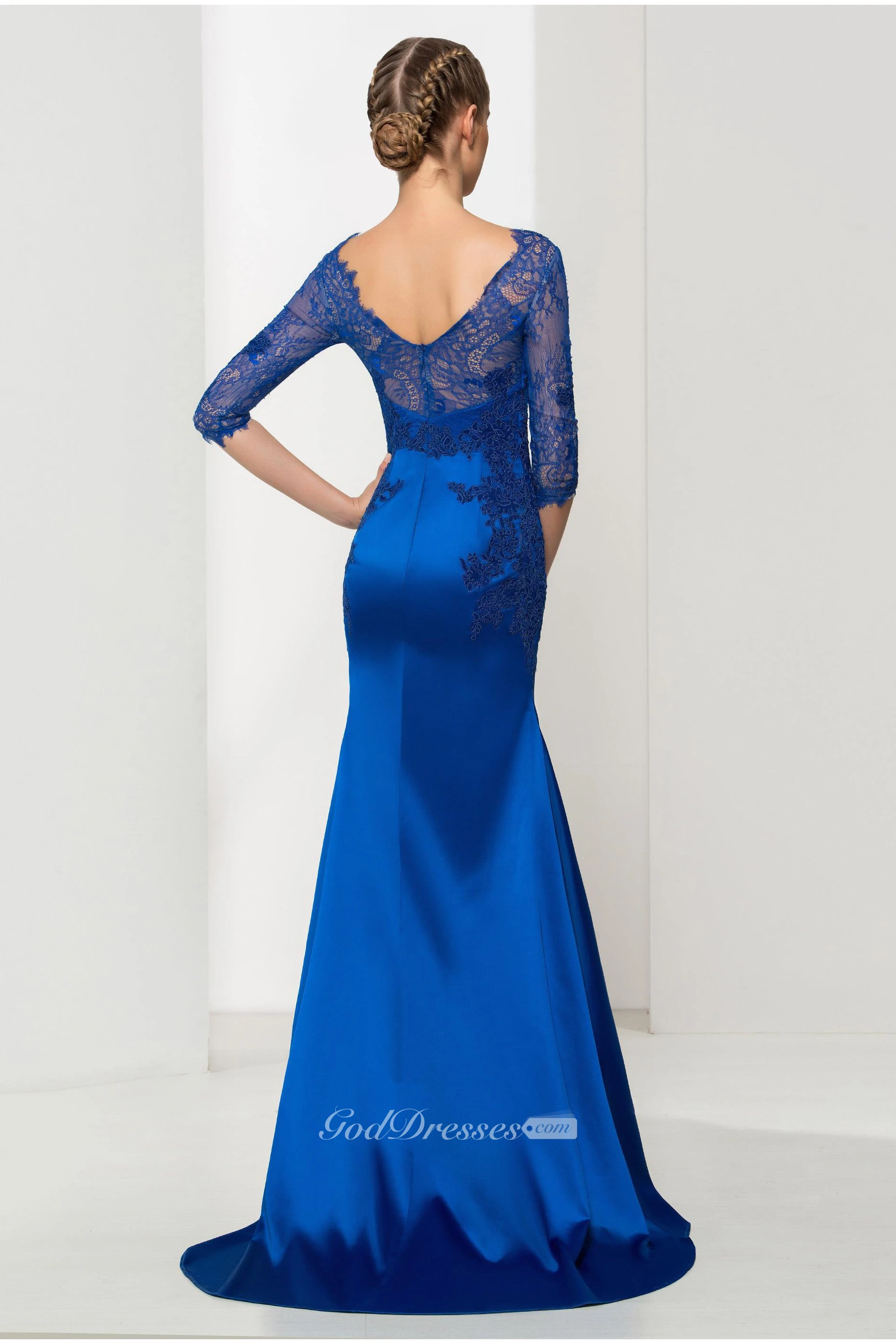 Elegant Satin and Tulle Mermaid Bateau Half-Sleeve Dress with Low-V Back