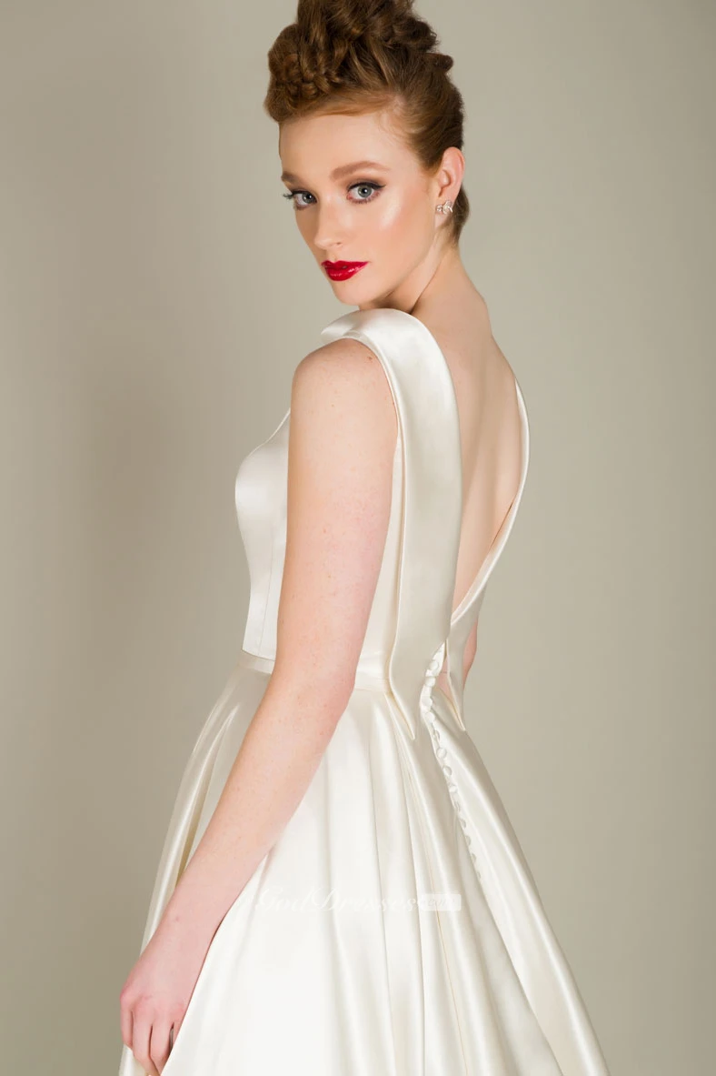 Elegant Satin Floor Length Jewel Neck Sleeveless Wedding Dress with Ruching