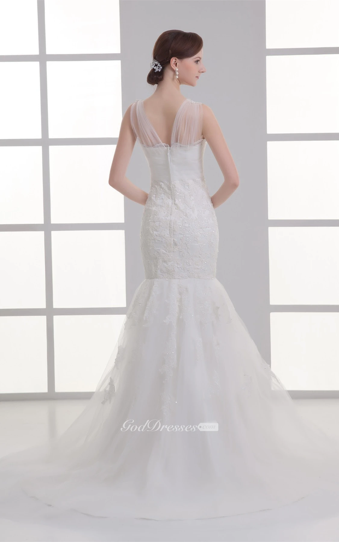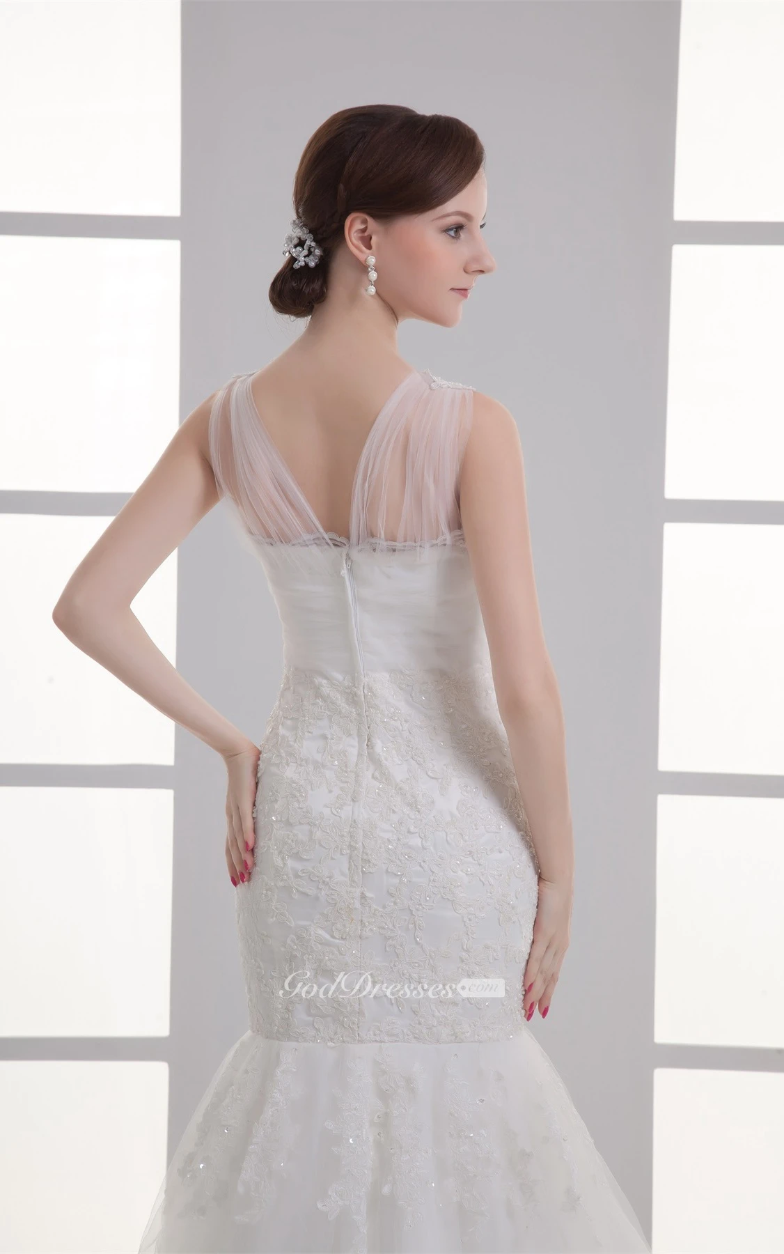 Elegant Satin Trumpet V Neck Most Wedding Dresses