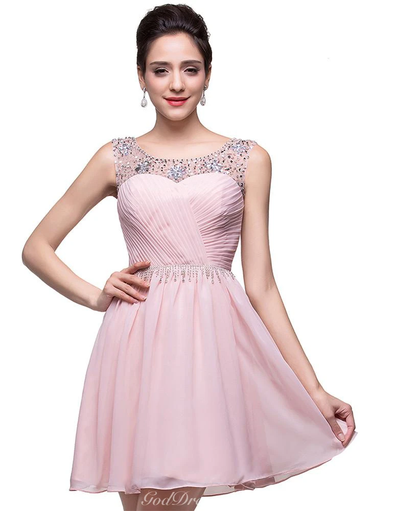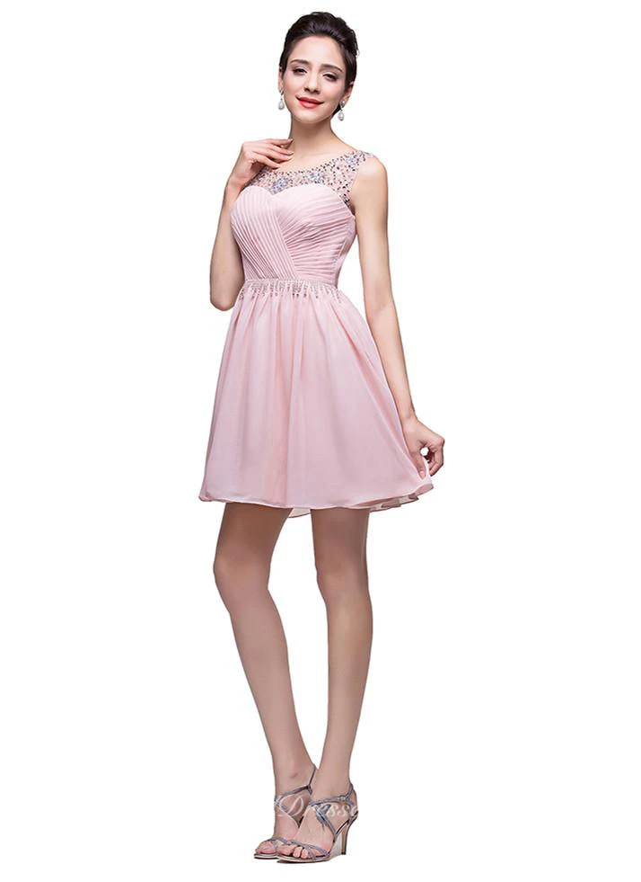 Elegant Sleeveless Crystal Short Homecoming Dress Chiffon