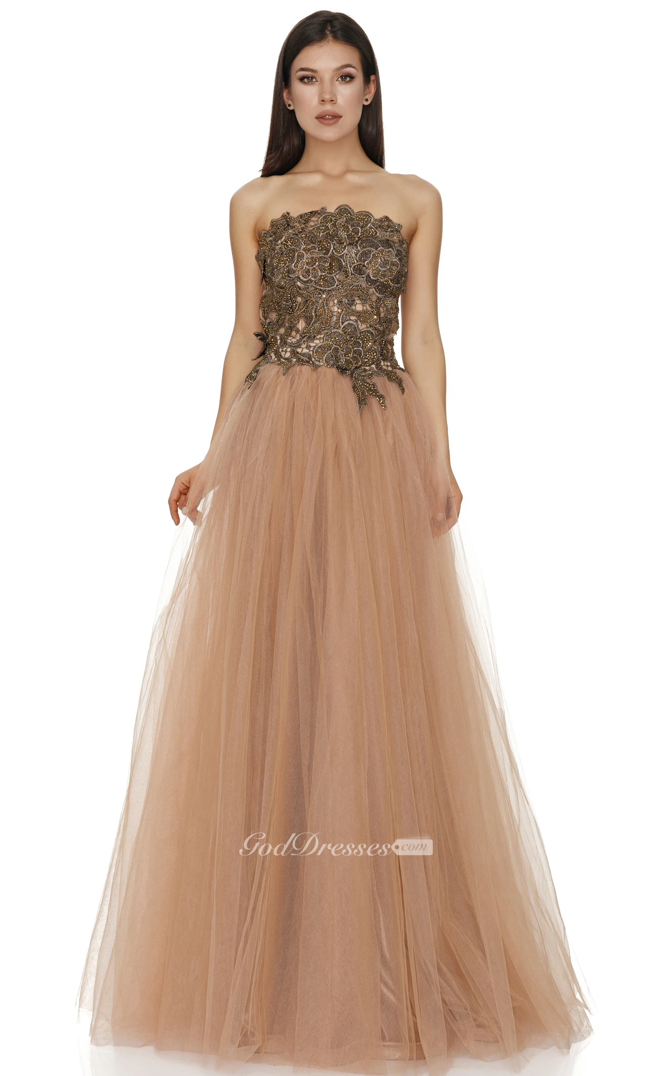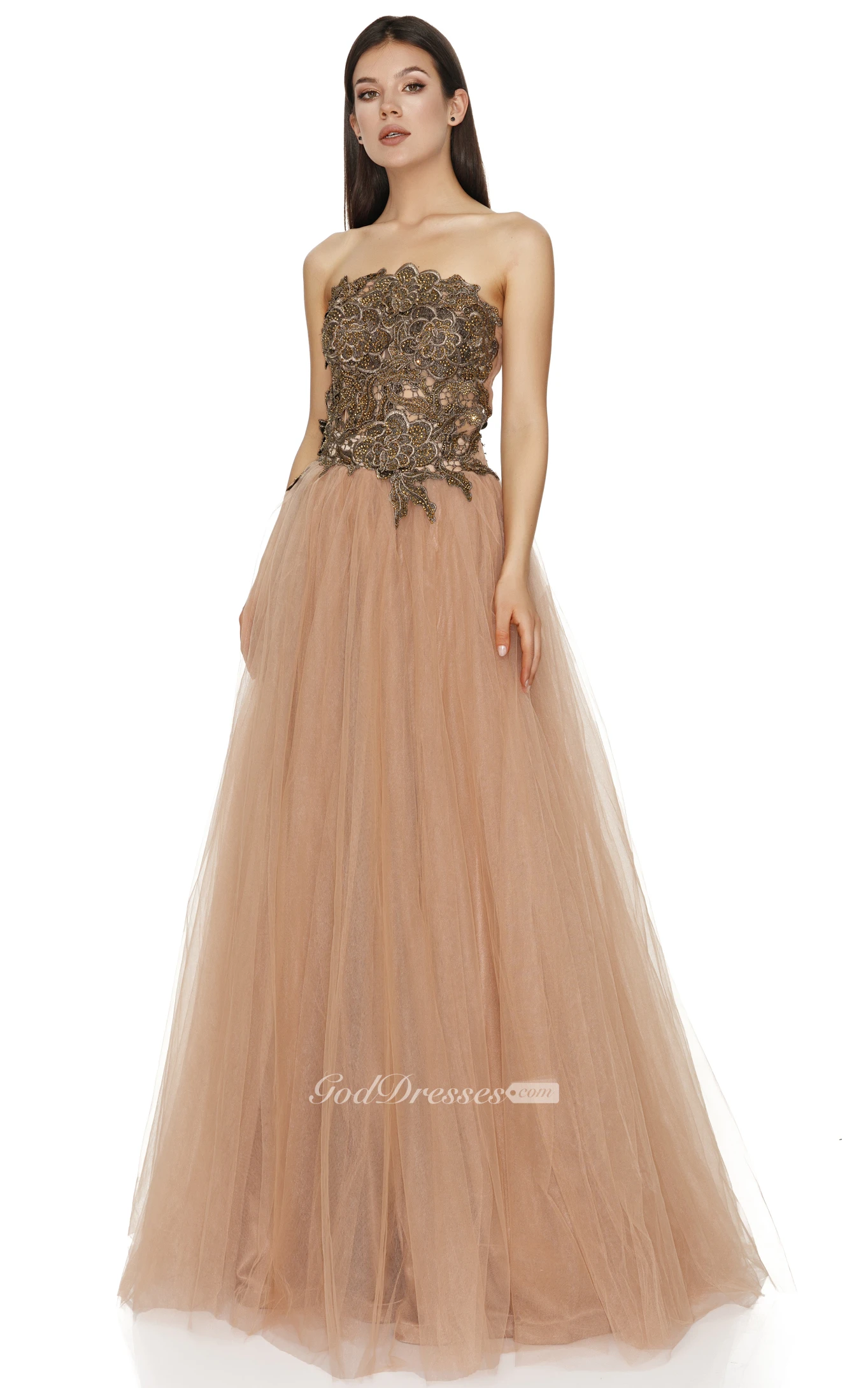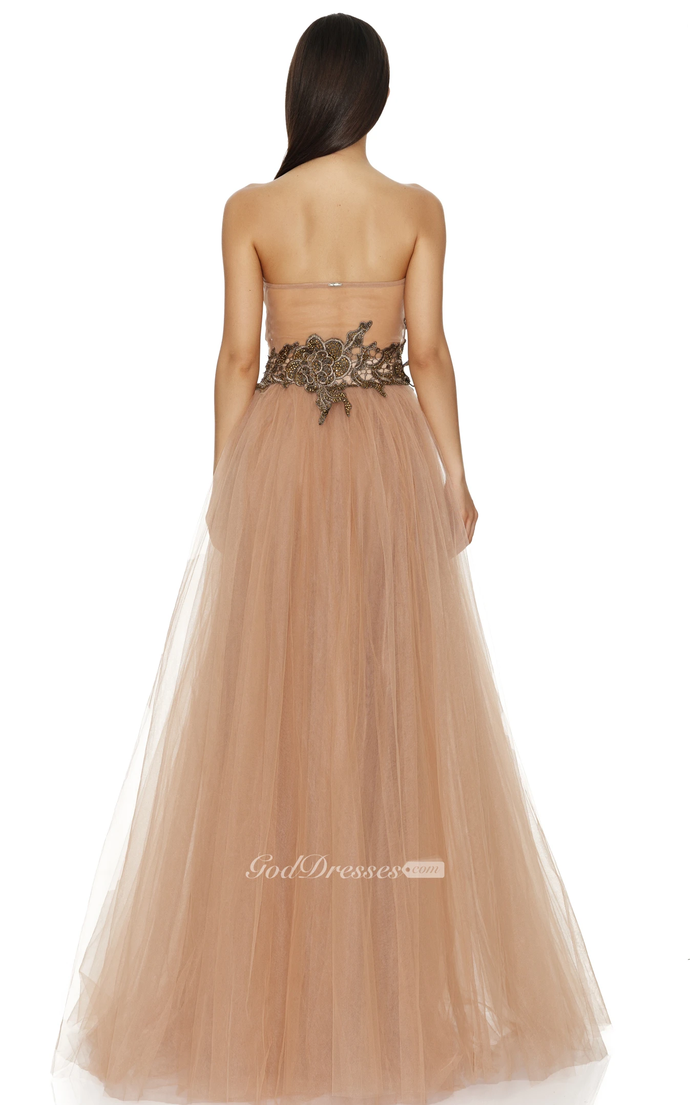 Elegant Sleeveless Floor-length Ball Gown Lace Open Back Formal Dress with Appliques