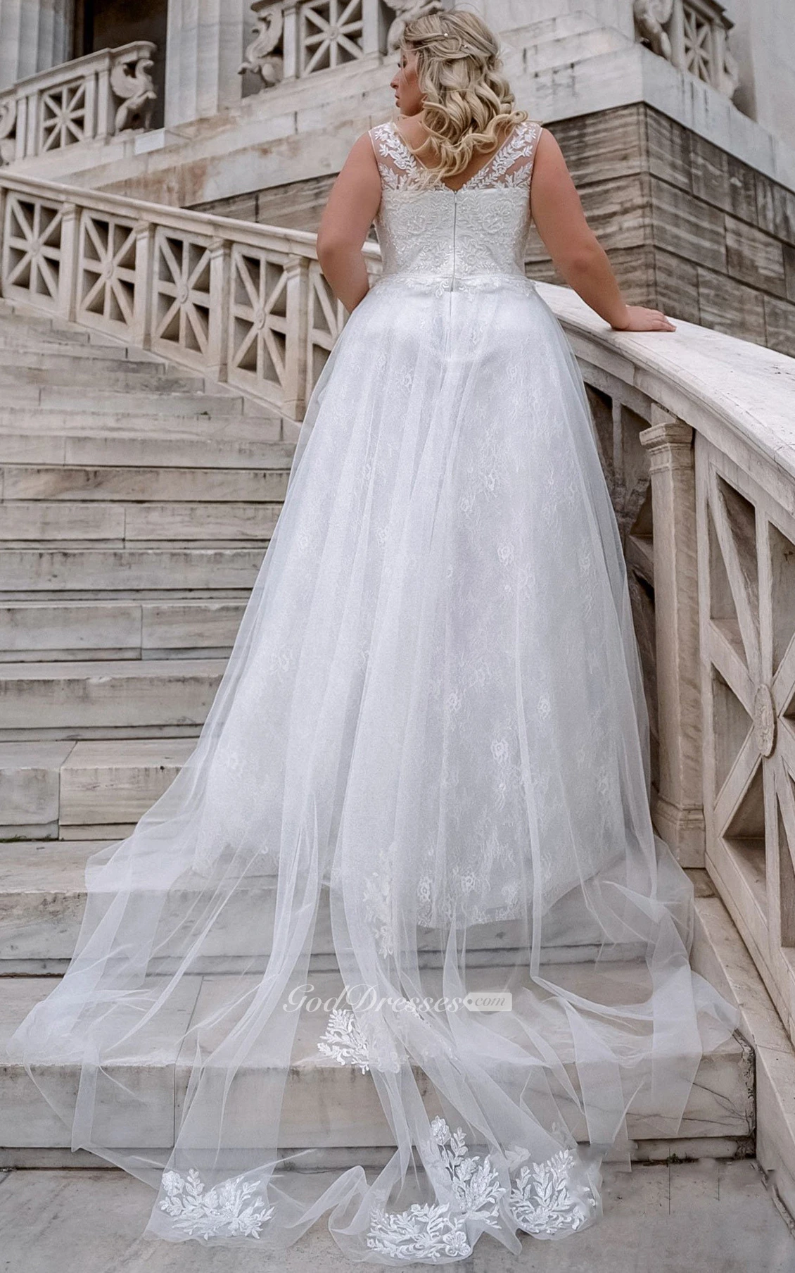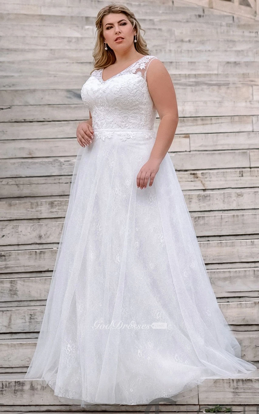 Elegant Sleeveless Floor-length Lace A Line Wedding Dress with Appliques