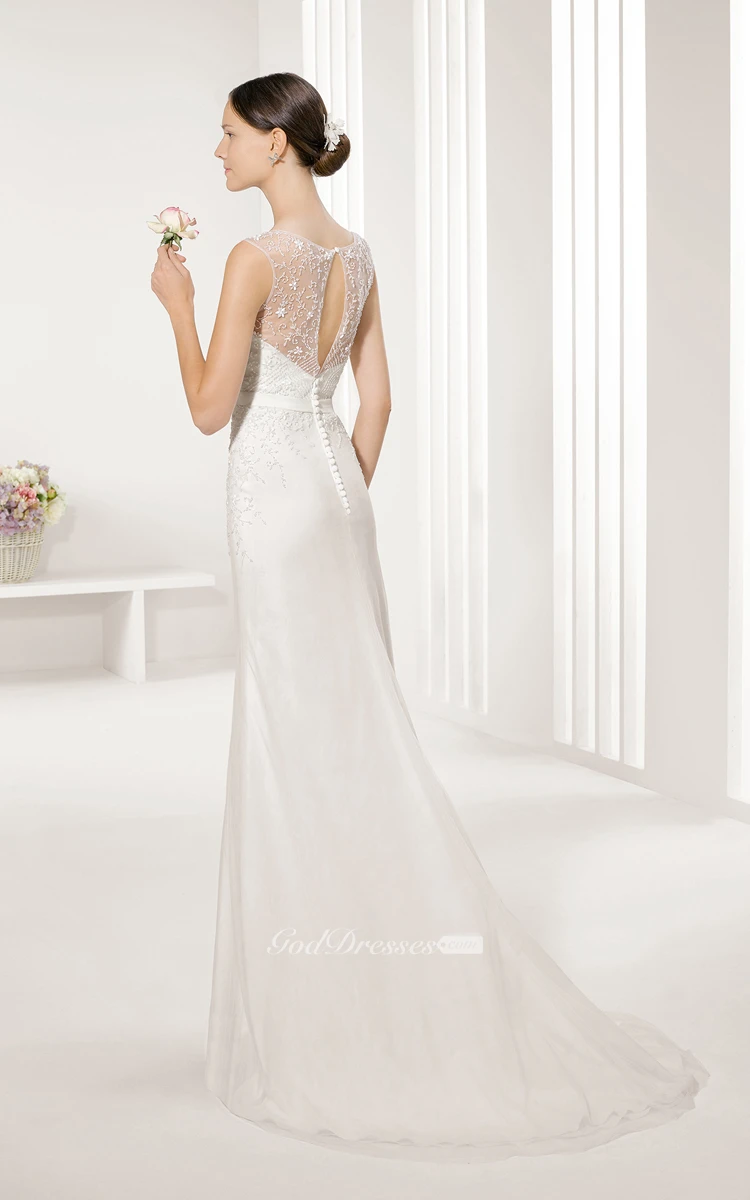 Elegant Sleeveless Illusion-Neck Dress With Bow