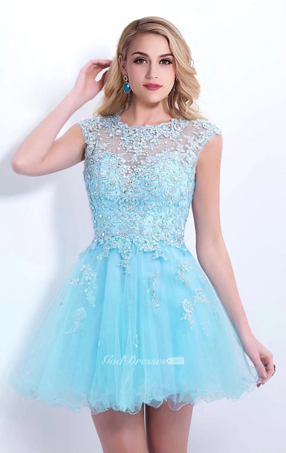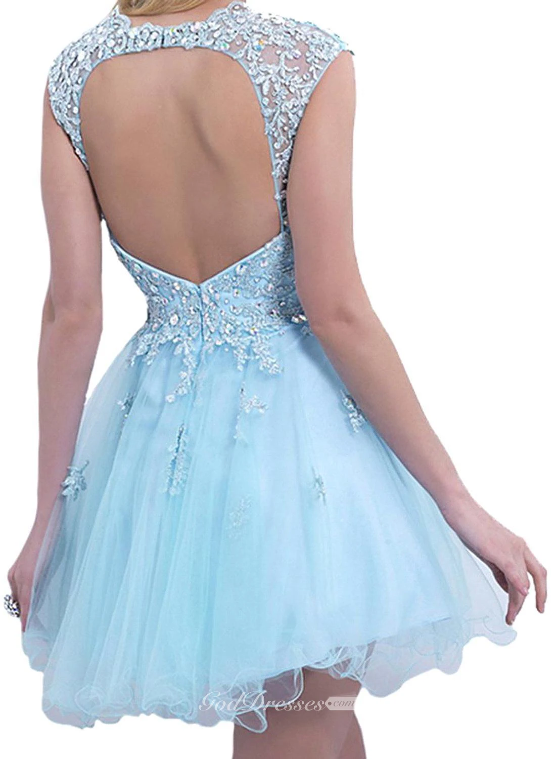 Elegant Sleeveless SHort Tulle Homecoming Dress Lace Appliques