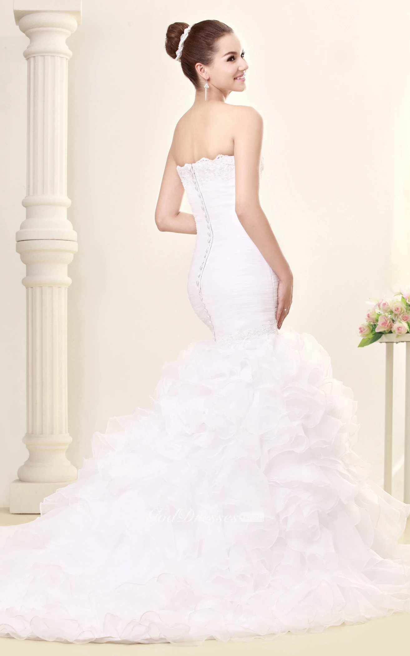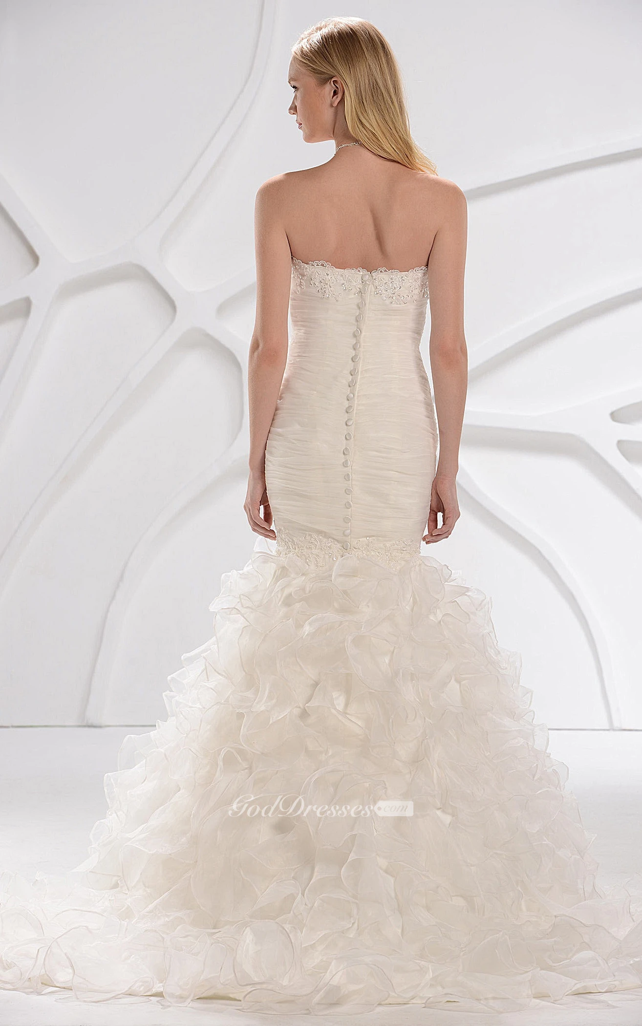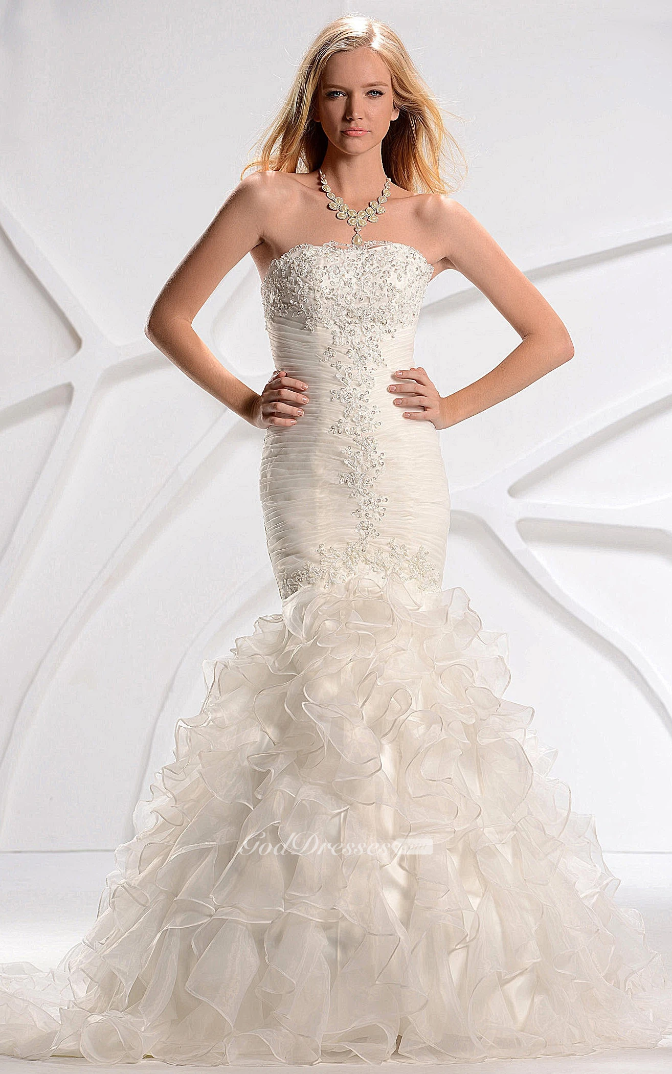 Elegant Strapless Ruched Column Dress With Ruffled Skirt