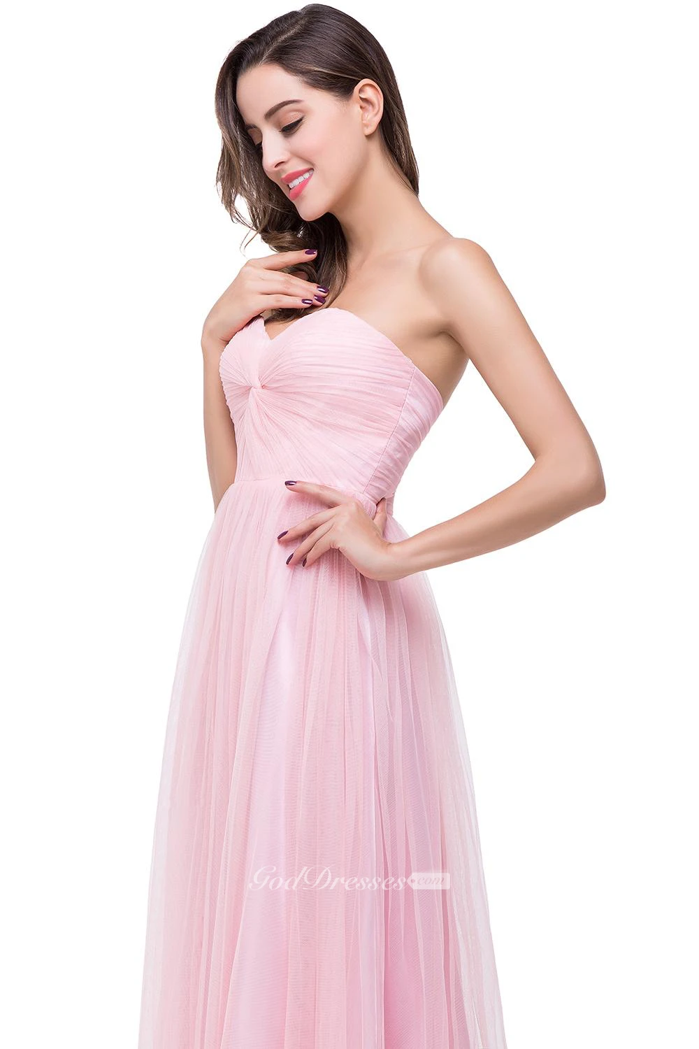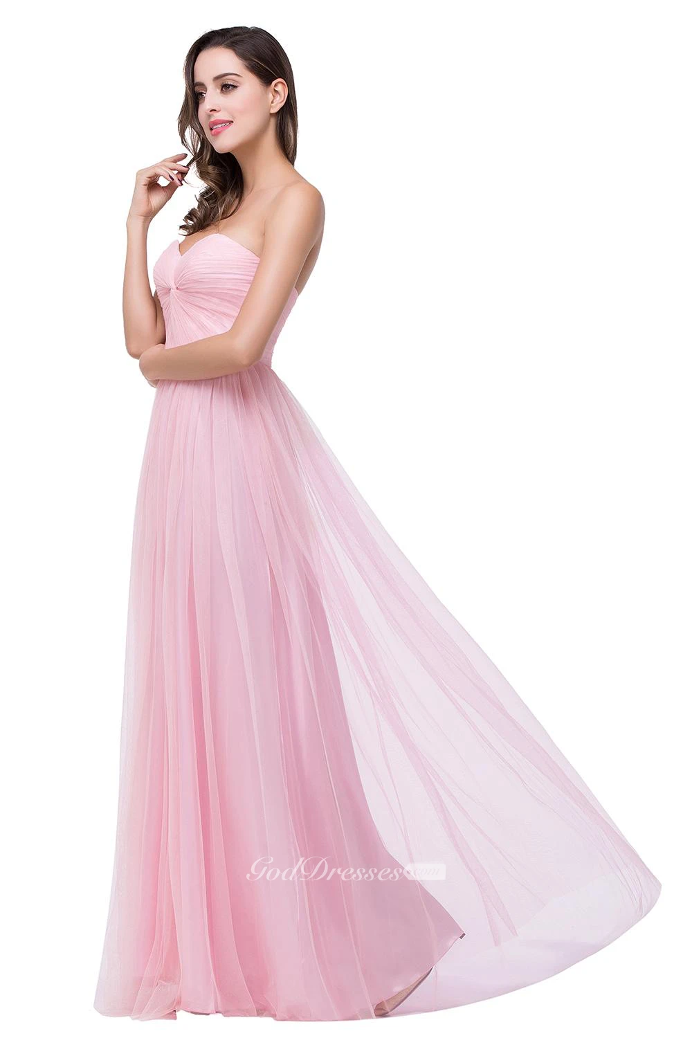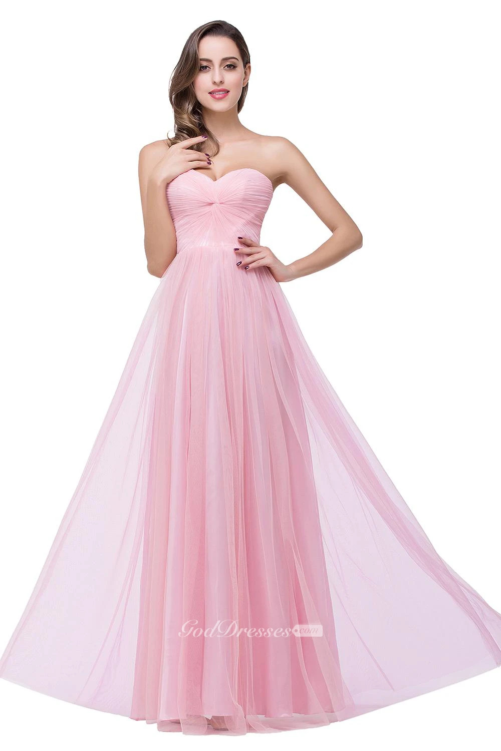 Elegant Sweetheart Pink Bridesmaid Dress Ruched Long Prom Gown