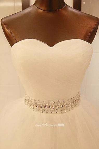 Elegant Sweetheart Sleeveless Ball Gown Wedding Dress With Tulle Lace Beadings