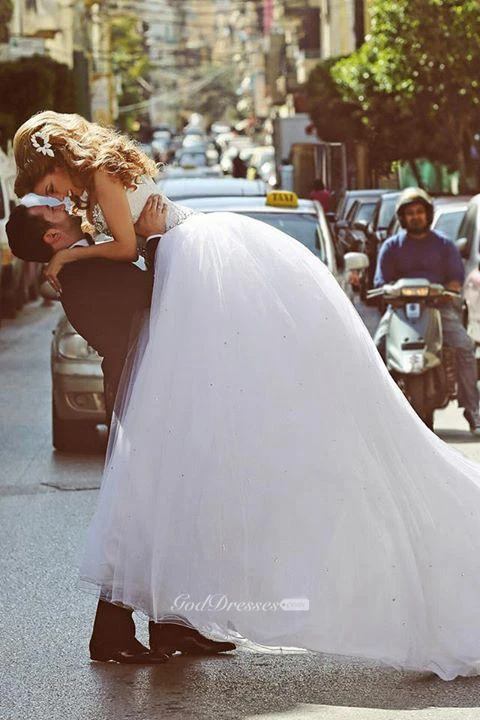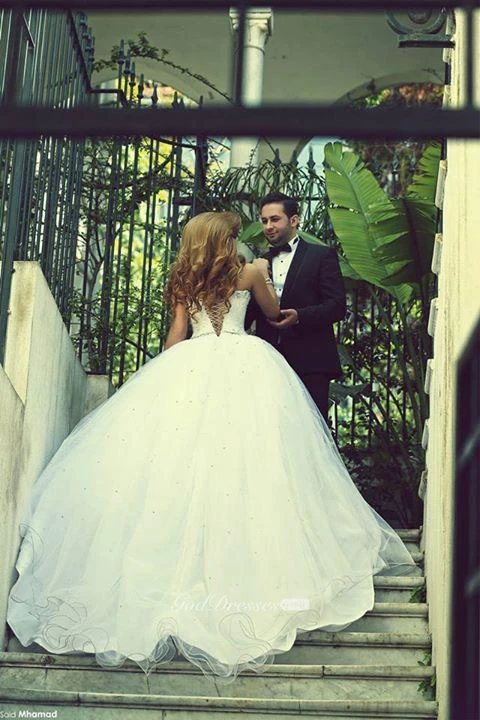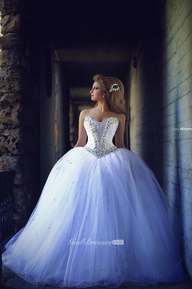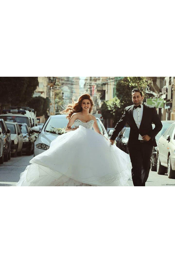Elegant Sweetheart Sleeveless Tulle Wedding Dress Lace-up With Beadings Crystals