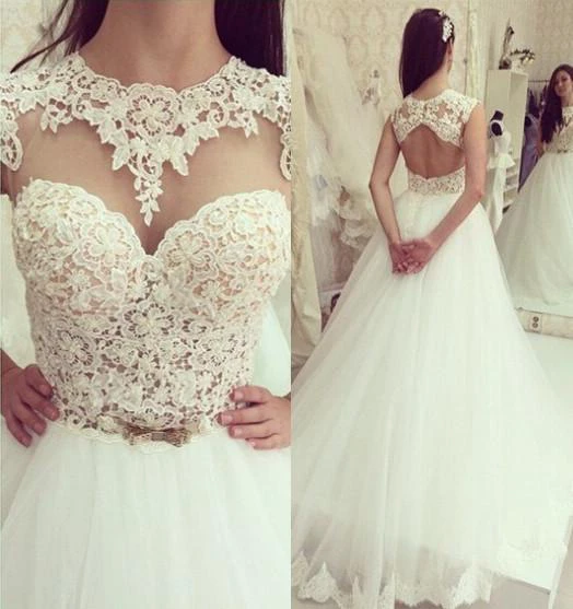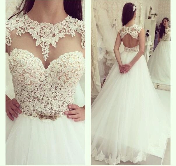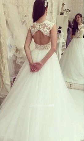Elegant Tulle Lace Appliques Wedding Dress Bowknot Sweep Train