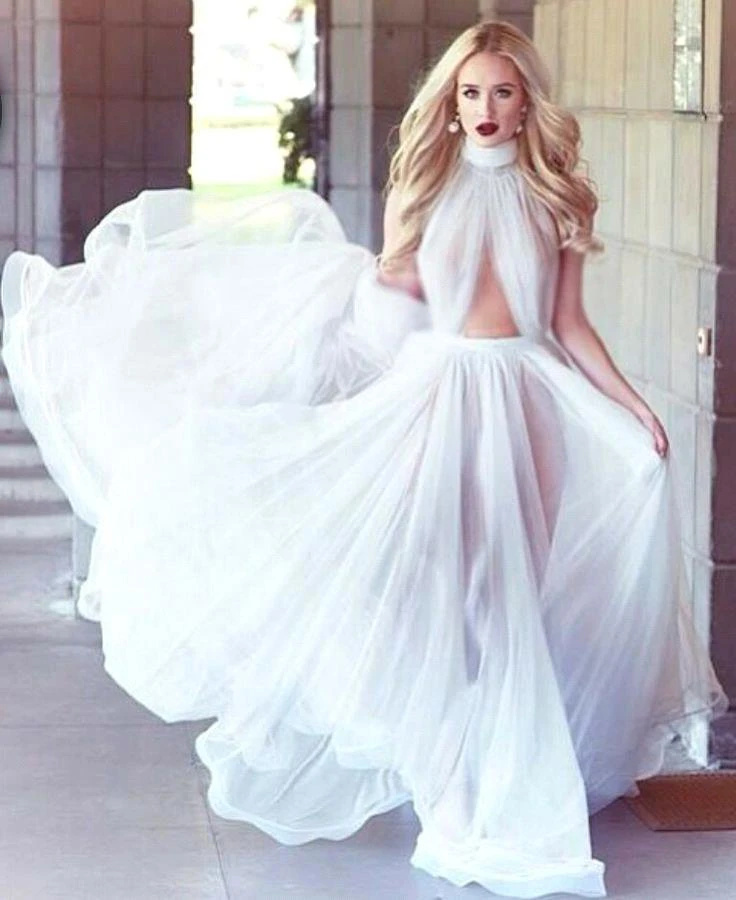 Elegant White High-Neck Prom Dresses Long Evening Party Gowns