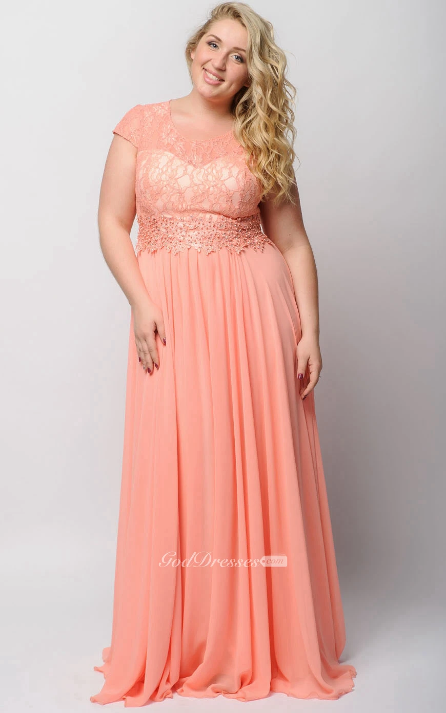 Empire Bateau Short Sleeve Empire Chiffon Appliques Illusion Dress