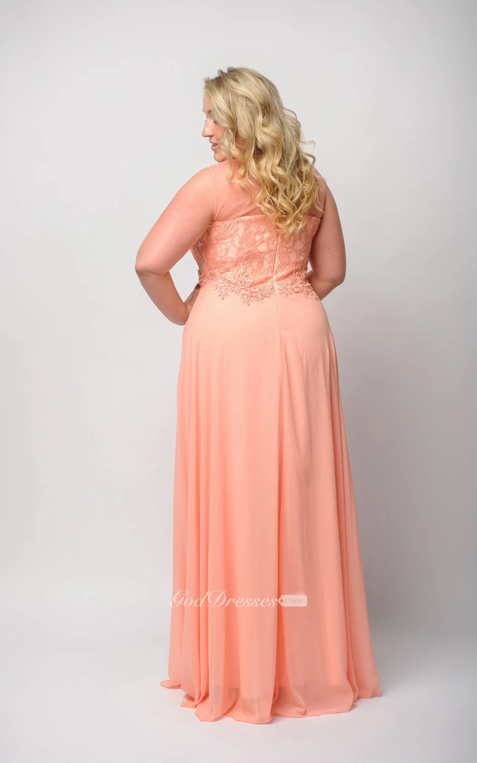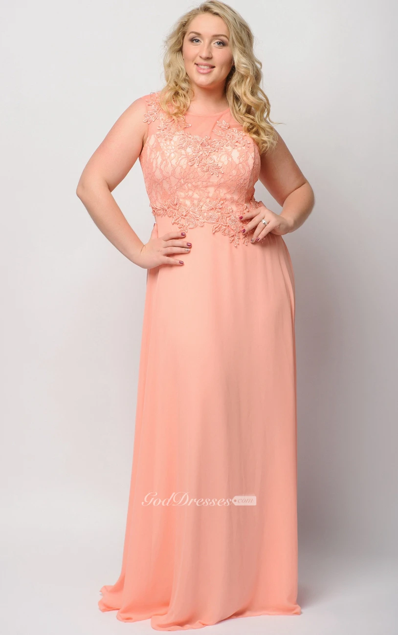 Empire Floor-Length Bateau Sleeveless Empire Chiffon Lace Zipper Dress