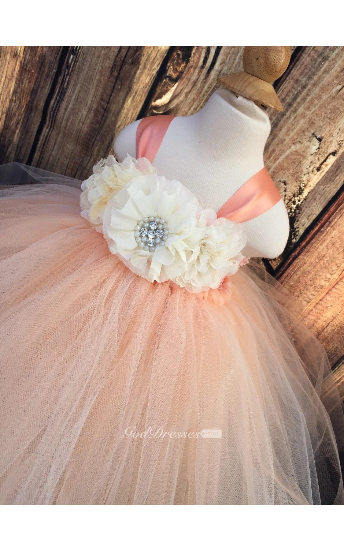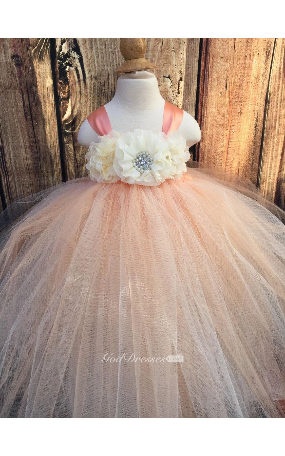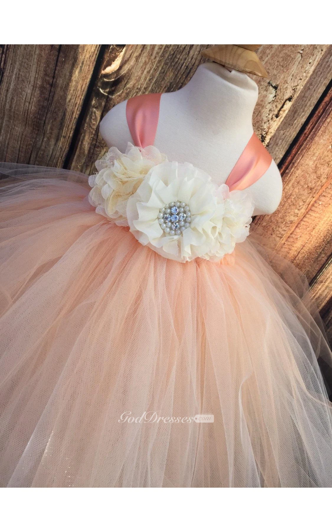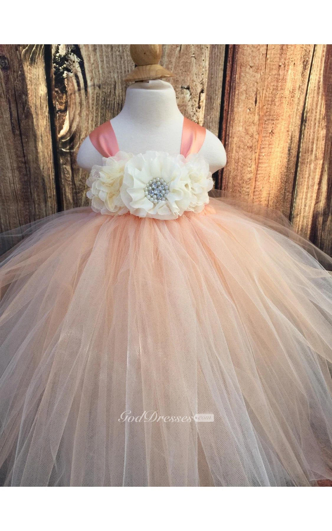 Empire Floral Bodice Ruffled Tulle Ball Gown With Beadings