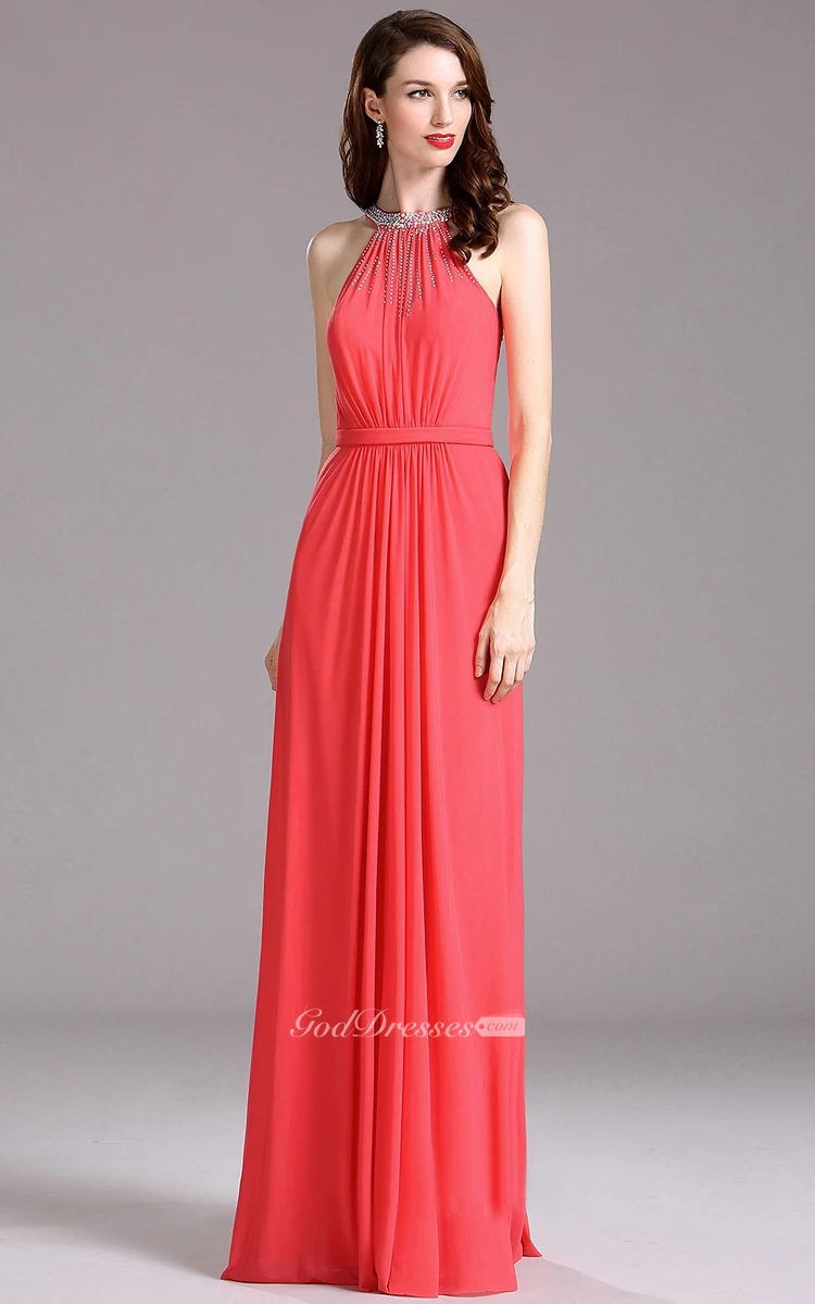 Empire Jewel Sleeveless Empire Chiffon Beading Dress