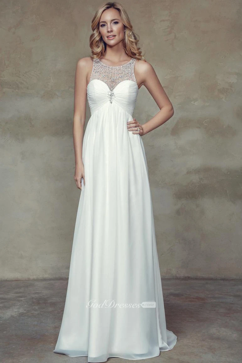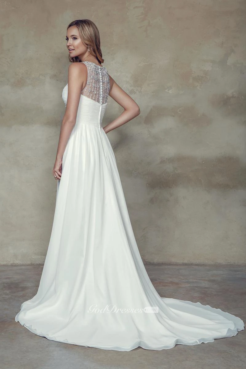 Empire Ruched Sleeveless Scoop Neck Chiffon Wedding Dress