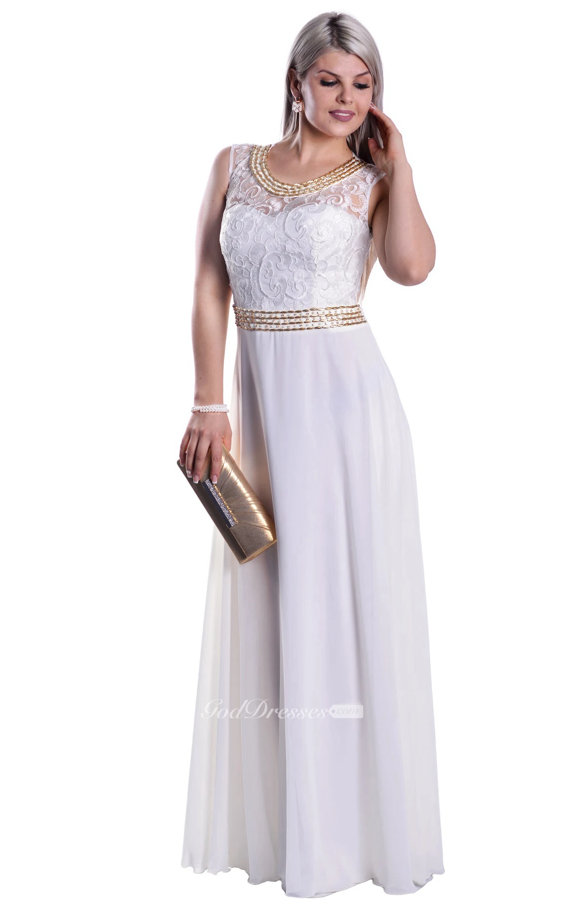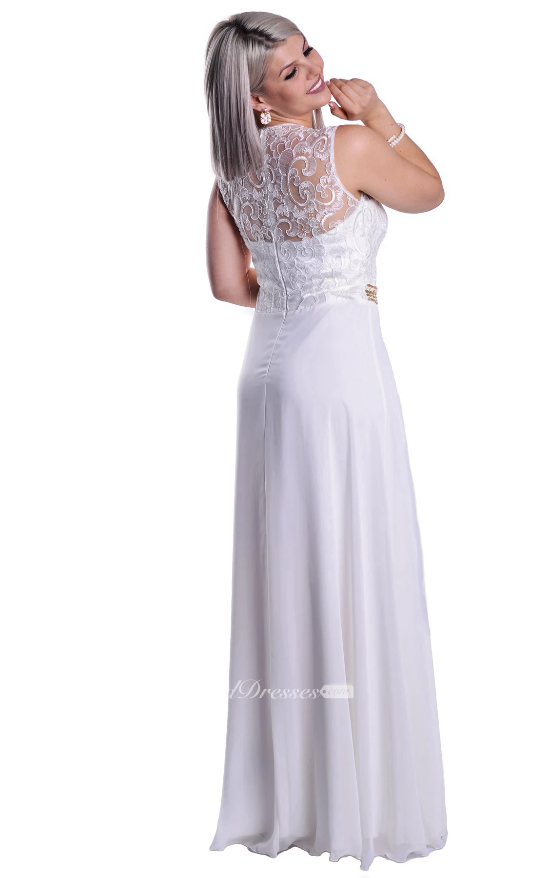 Empire Scoop Sleeveless Empire Chiffon Lace Illusion Dress