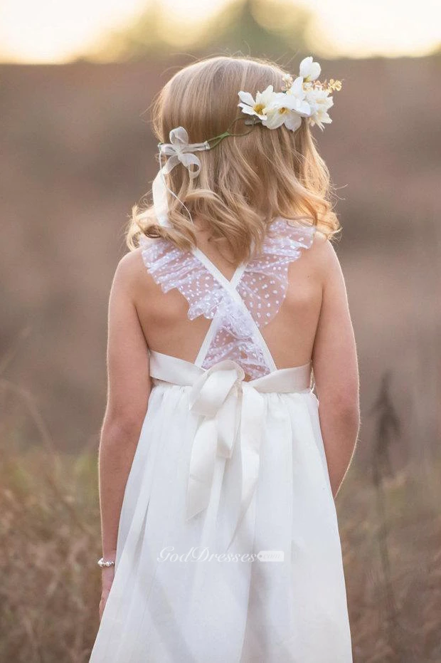 Empire V-neck A-line Ankle Length Chiffon Dress With Criss-cross Straps