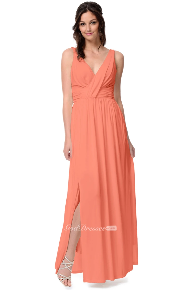 Empire V-Neck Chiffon Sleeveless Enchanting Long Dress