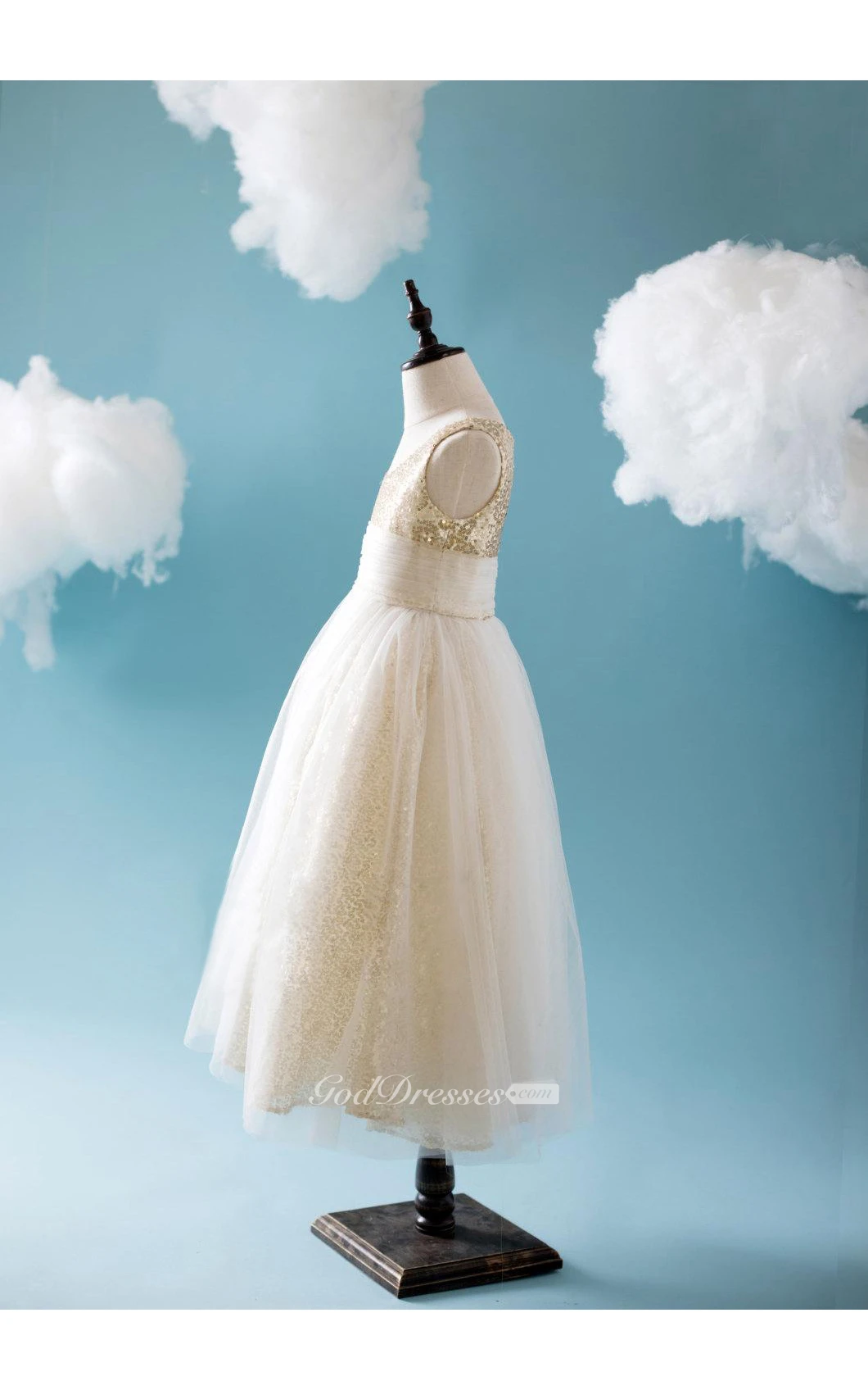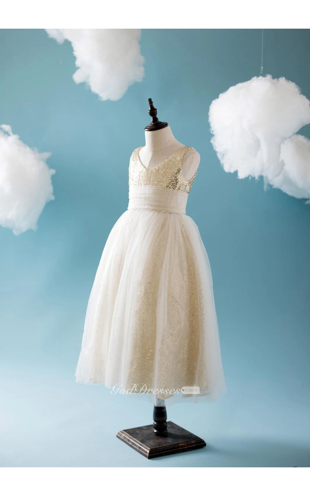 Empire V Neck Sleeveless Tulle Ball Gown With Sequins and Bandage