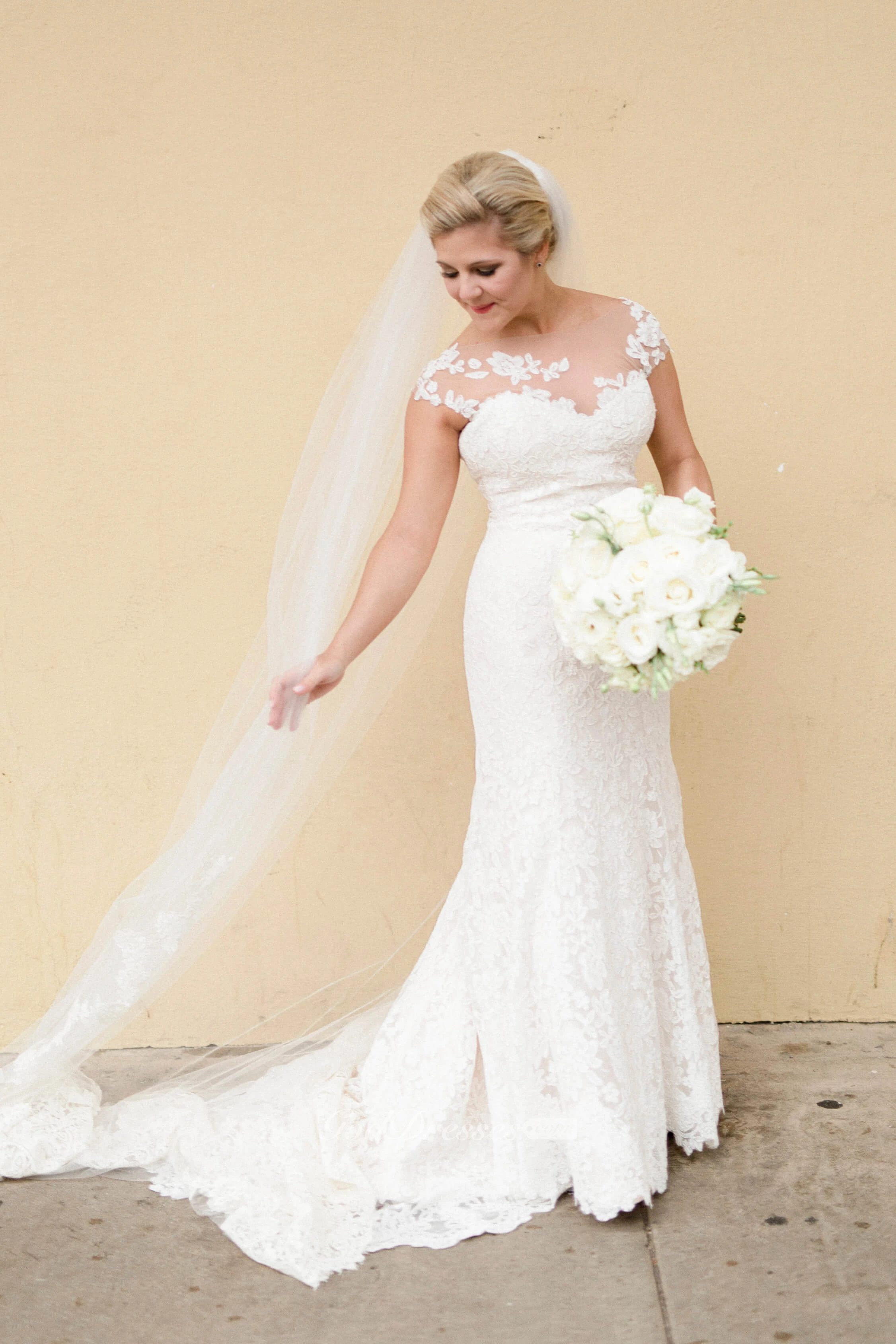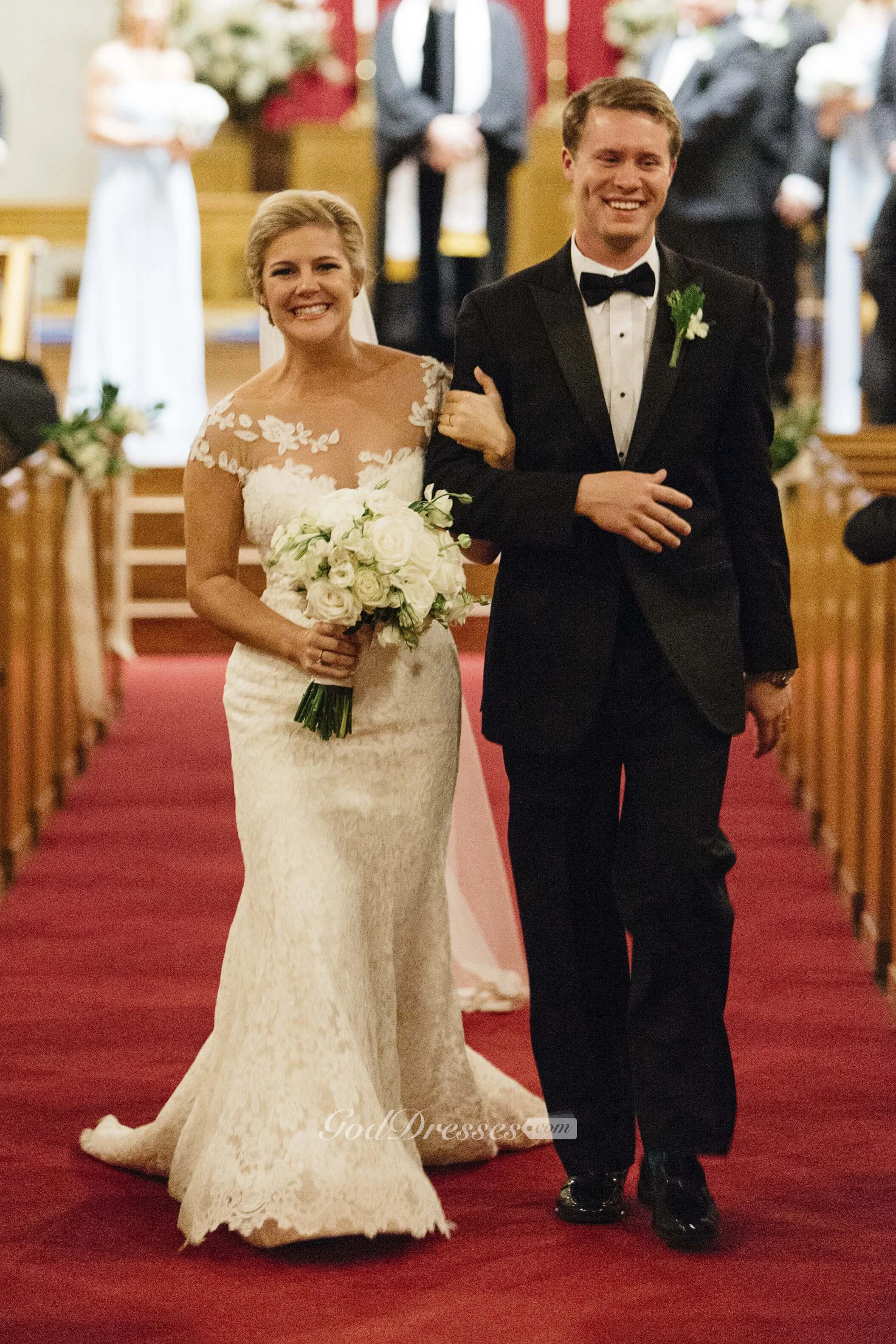 Empire Waist Lace Cap Sleeve Mermaid Bateau Gown With Floral Appliques