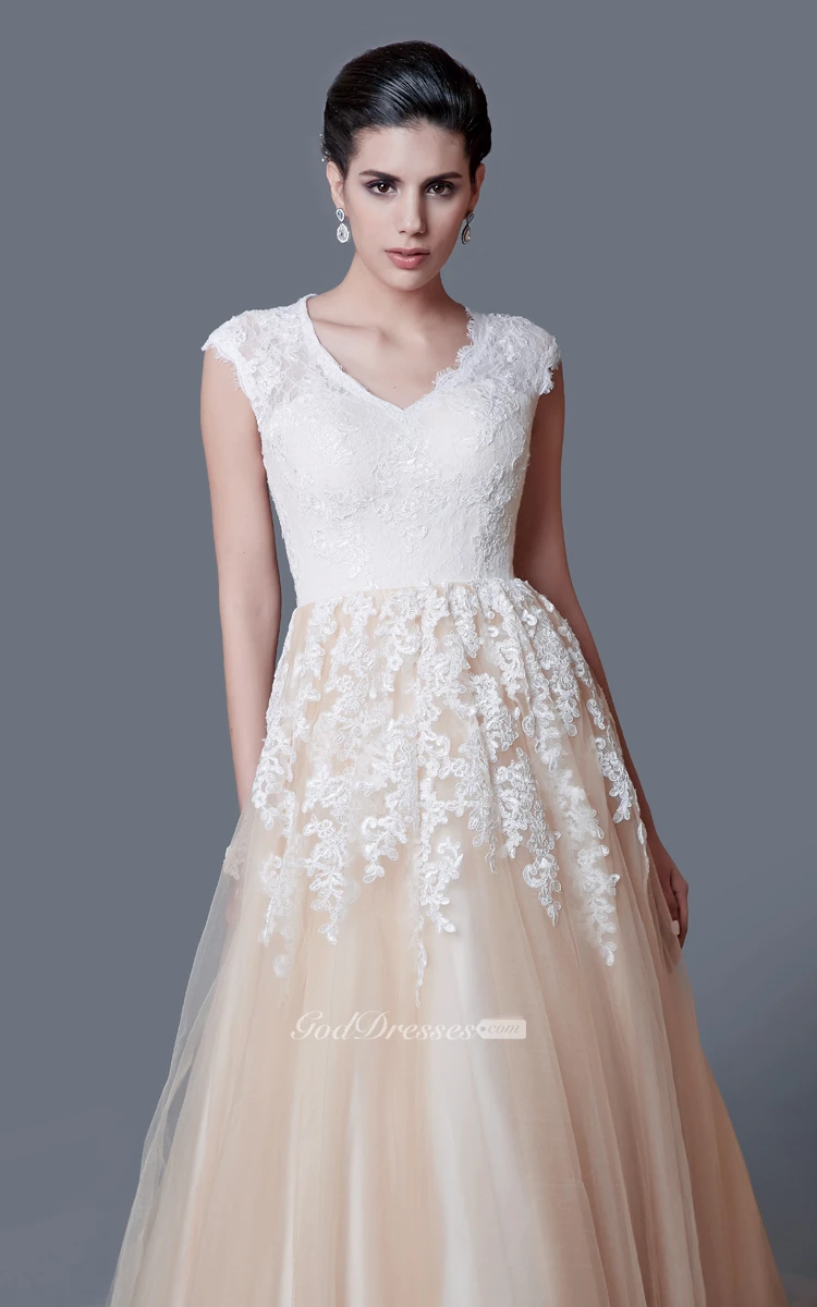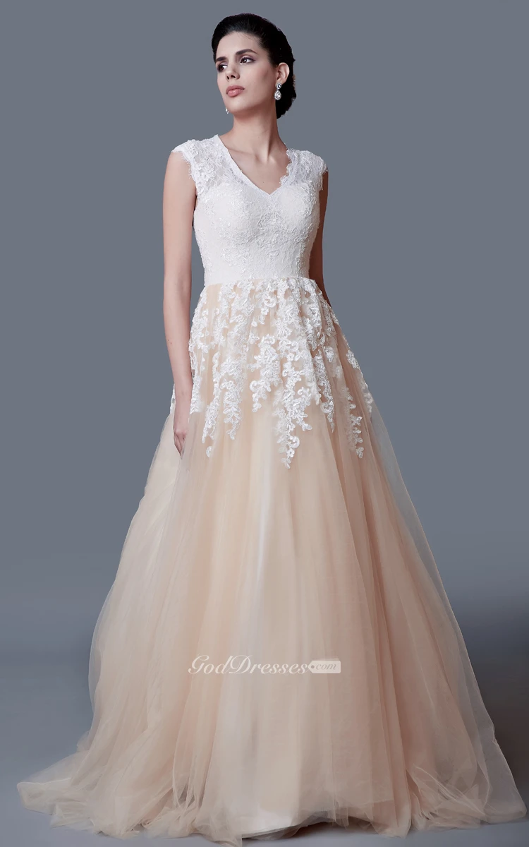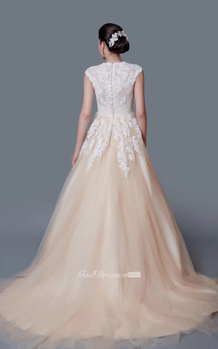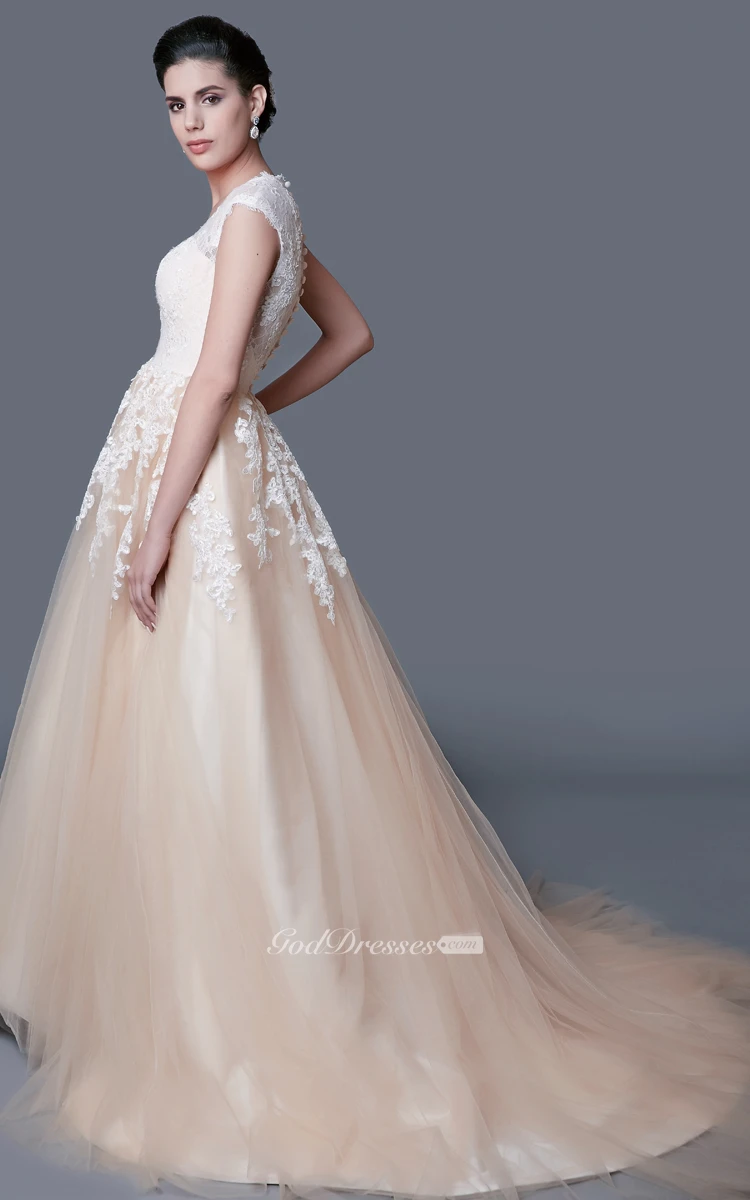 Enchanting Scalloped-Edge Neckline A-line Gown With Lace Appliques