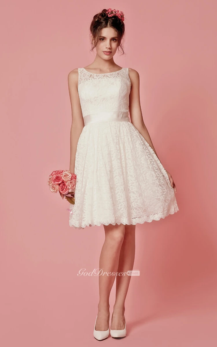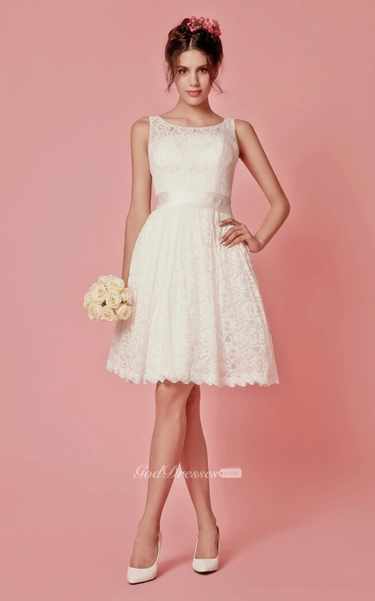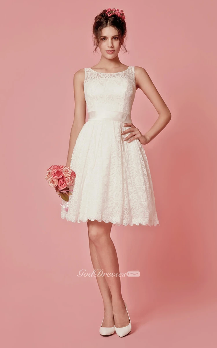 Enchanting Sleeveless Knee Length Lace Dress With Pleats