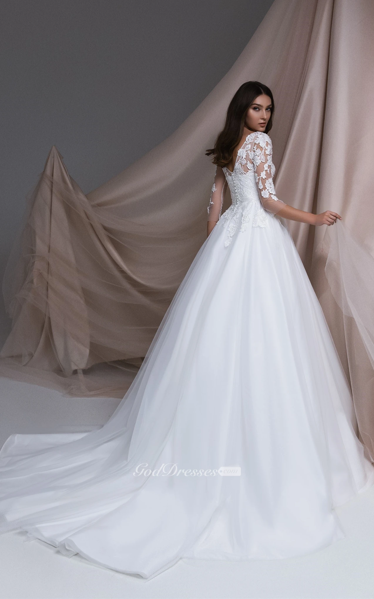 Ethereal Ball Gown Princess Lace Bridal Gown with Pockets