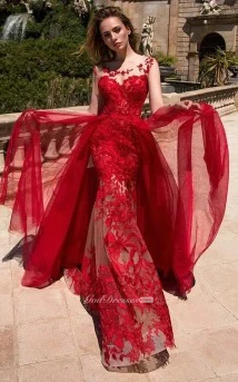 Ethereal Bateau Mermaid Tulle Floor-length Train Sleeveless Prom Dress with Removable Skirt