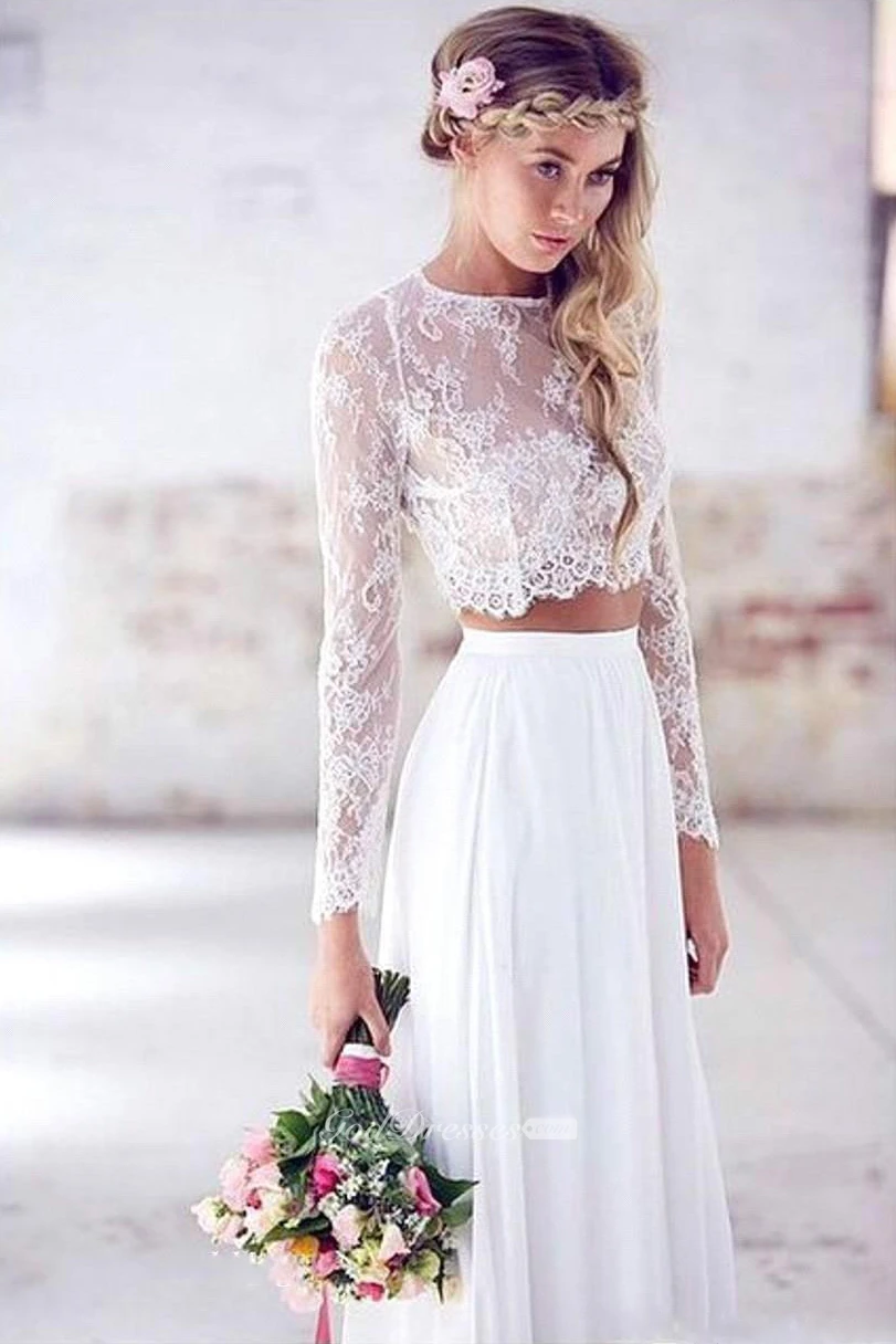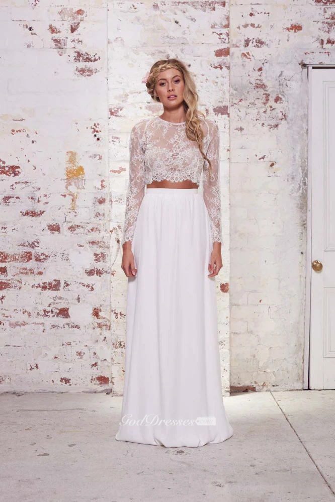 Ethereal Bohemian Tall Brides Two Piece Floor Length Wedding Dress With Pleats