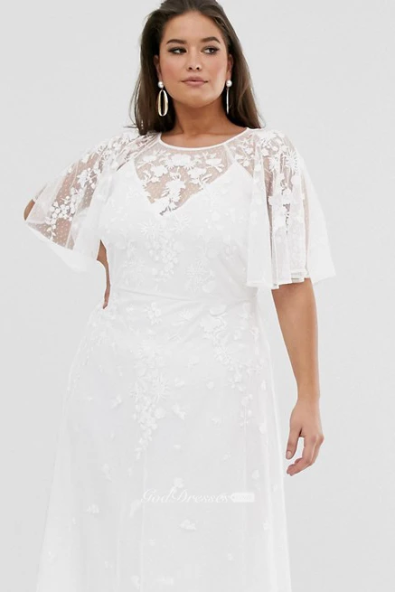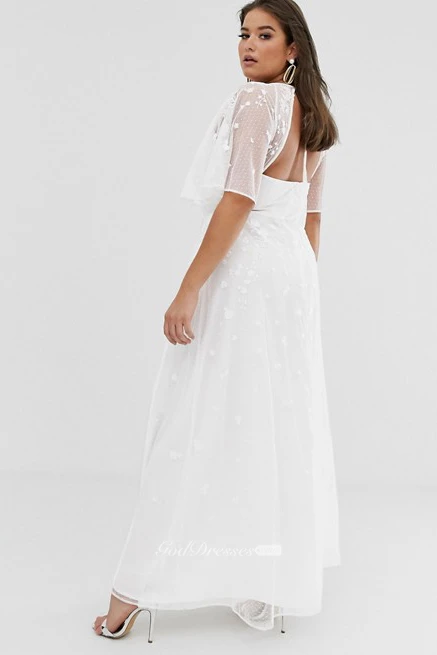 Ethereal Chiffon and Tulle Sheath Bridal Gown with Appliques