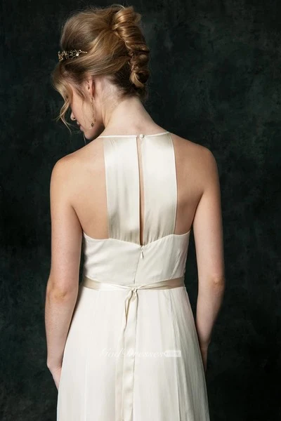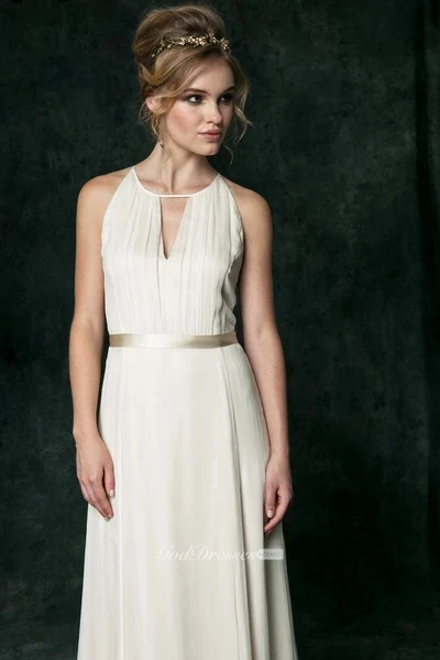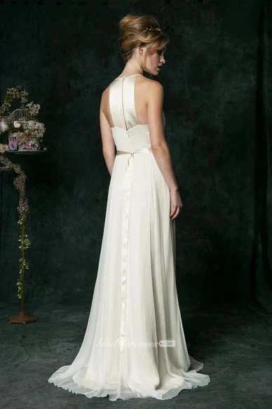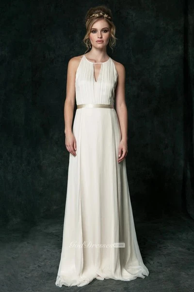 Ethereal Chiffon Halter Sleeveless Long Wedding Dress with Sash