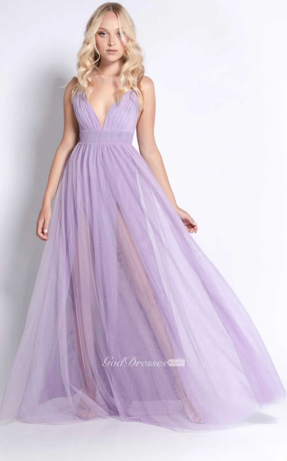 Ethereal Floor-length Long Sleeve Tulle A Line Guest Dress with Ruching