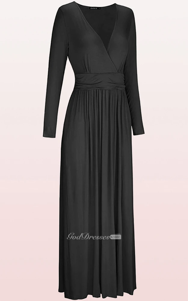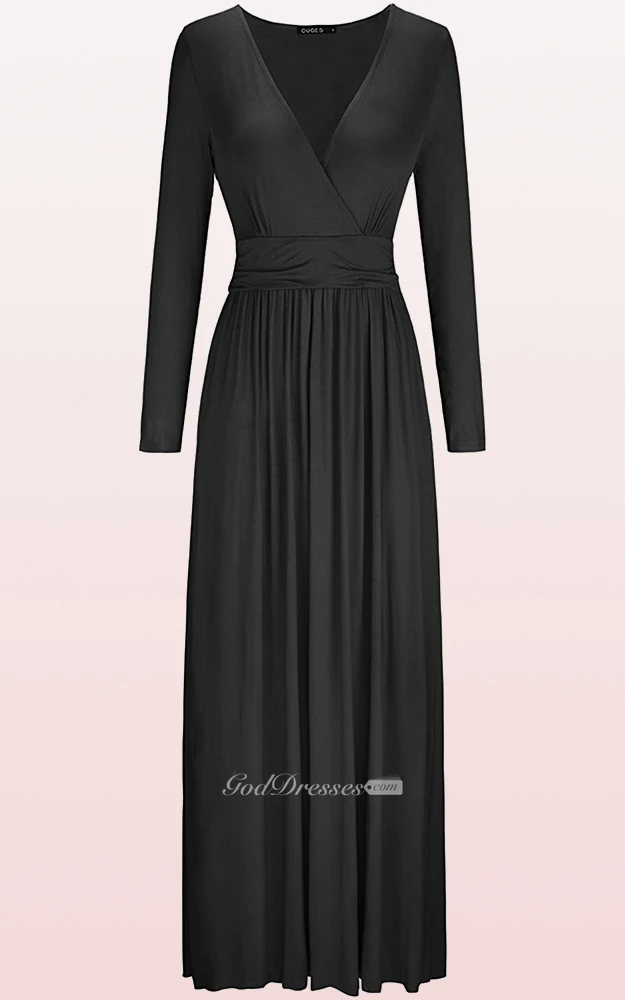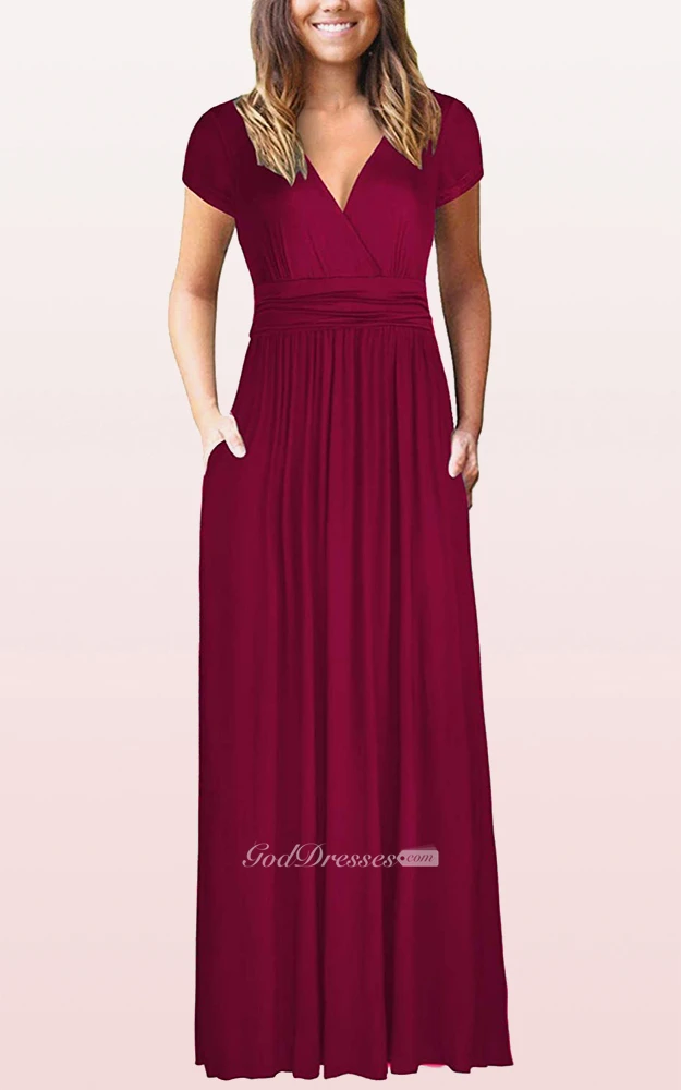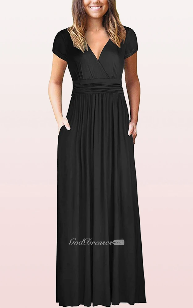 Ethereal Jersey V-neck A Line Guest Formal Dress With Pockets