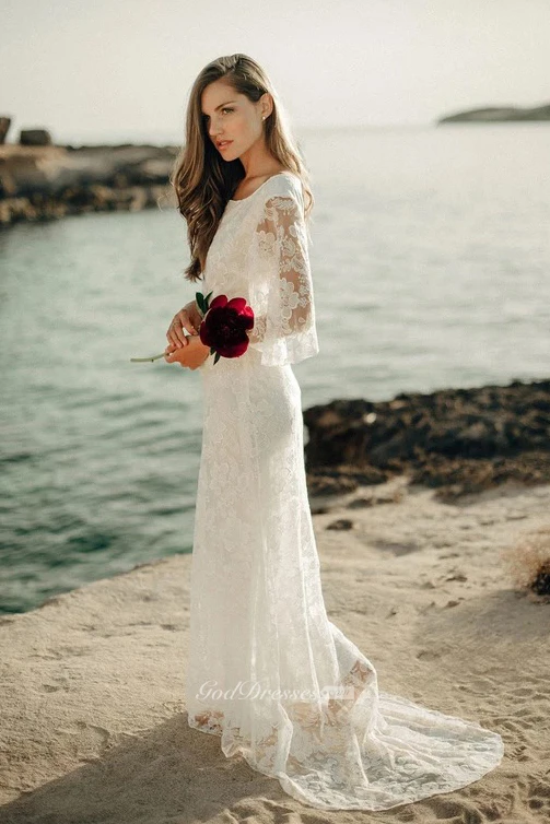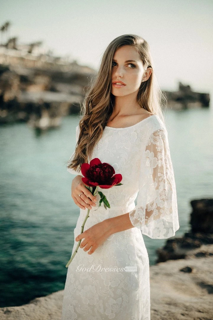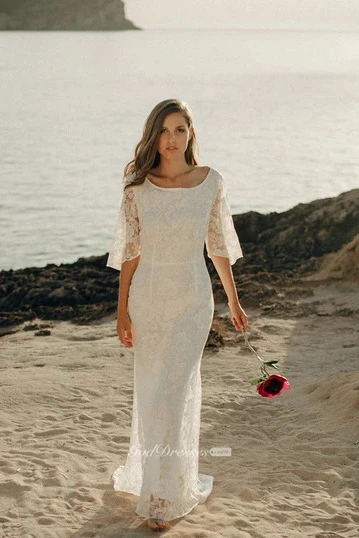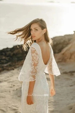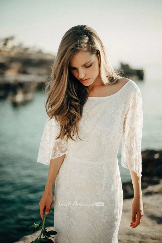 Ethereal Sheath Illusion Bat Sleeve Low-V Back Bridal Gown