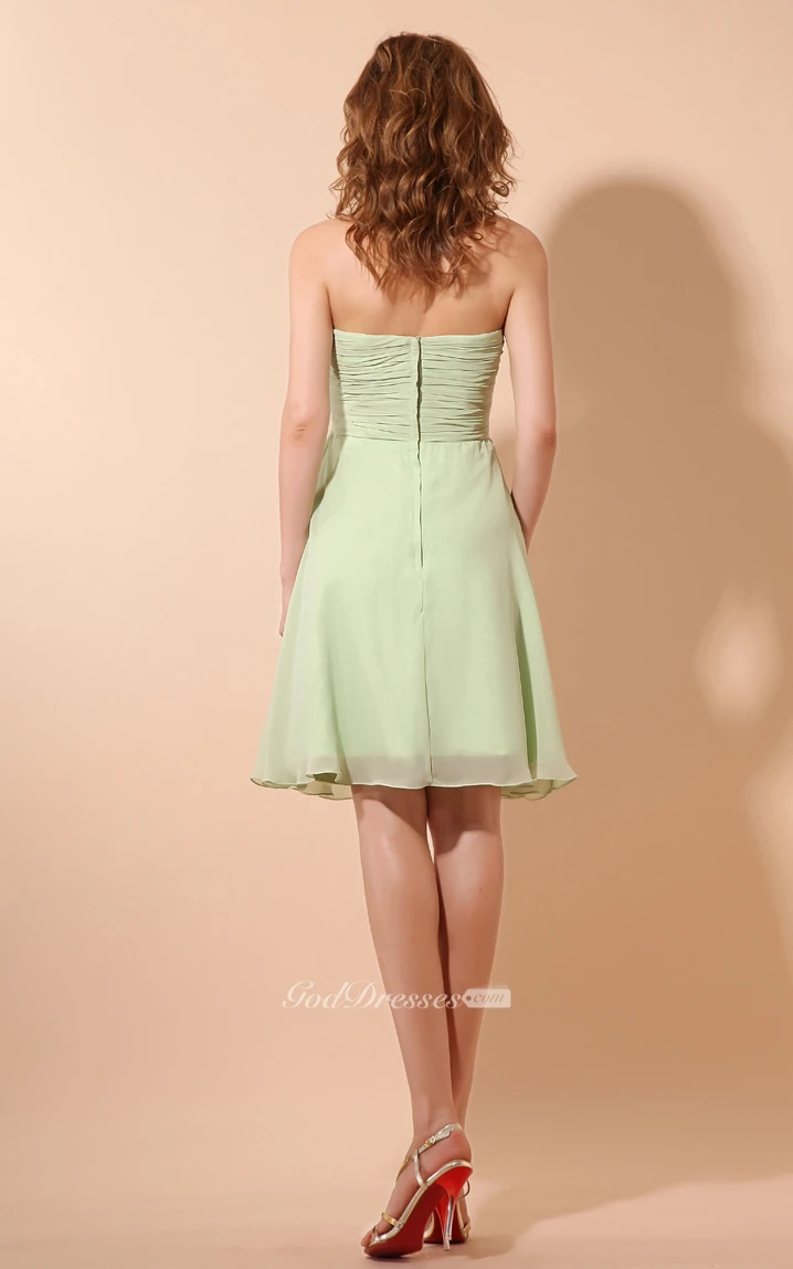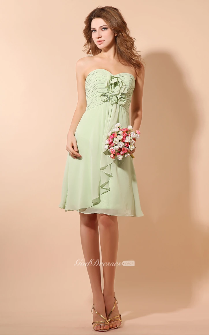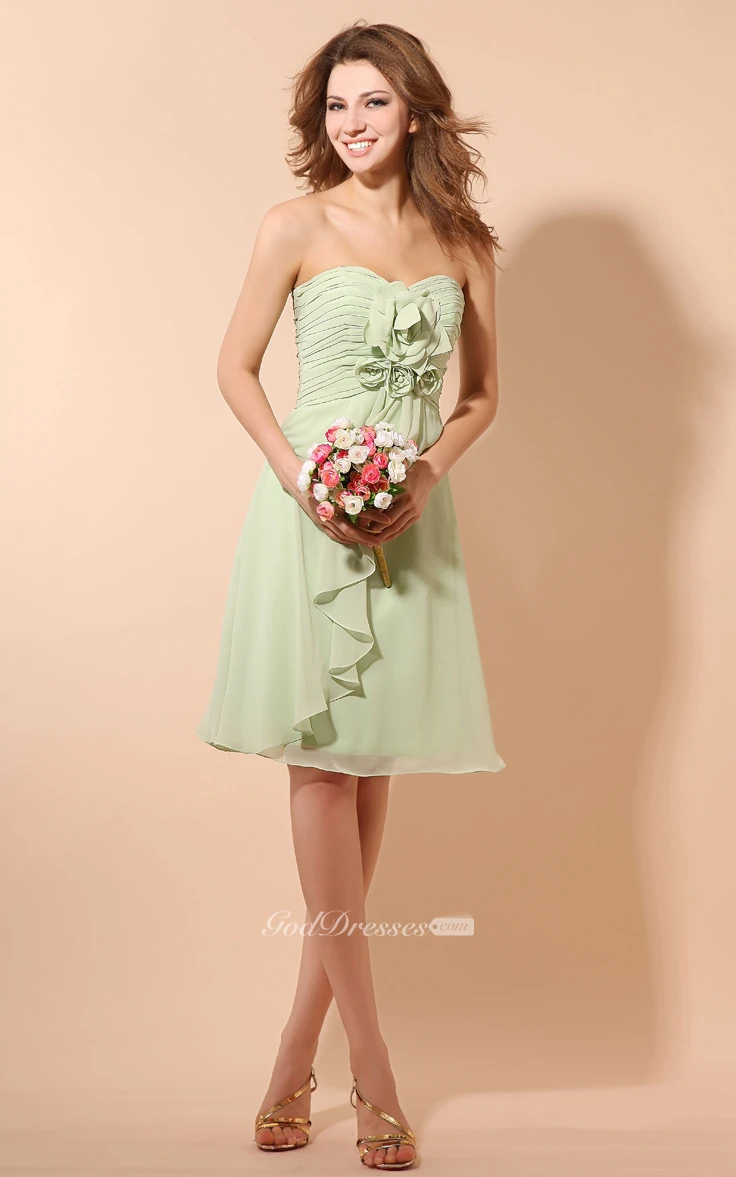Ethereal Short Chiffon Dress With Ruching and Flower