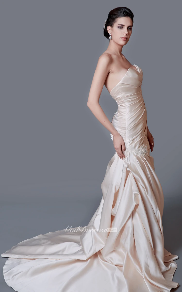 Ethereal Strapless Taffeta Mermaid Dress With Brooch