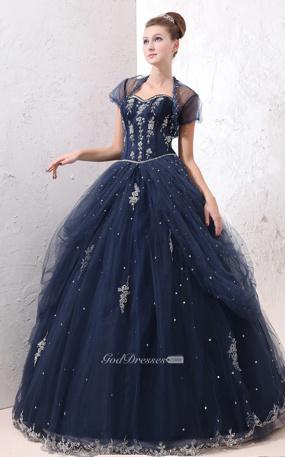 Exquisite A-Line Ball Gown With Tulle Overlay and Lace Appliques