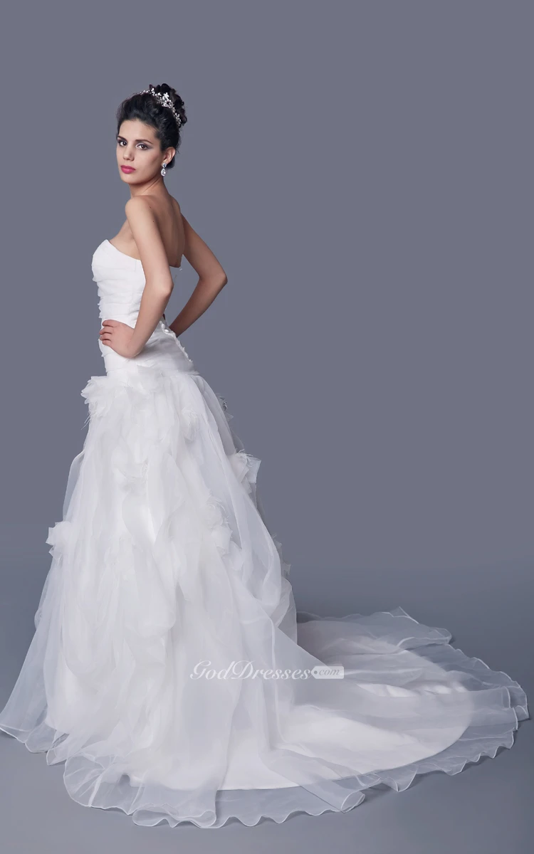Exquisite Ruched Organza Wedding Gown With Pick-up Ruffles