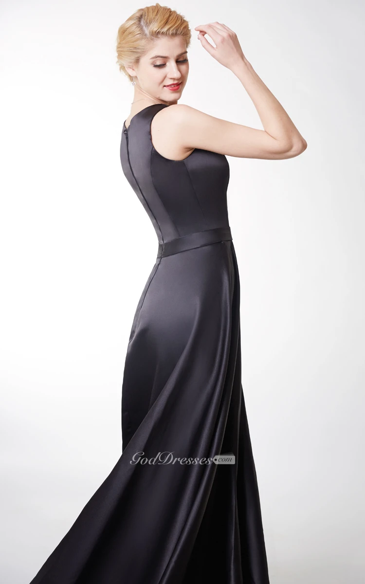 Exquisite Strapless Jewel Neck Long Satin Dress