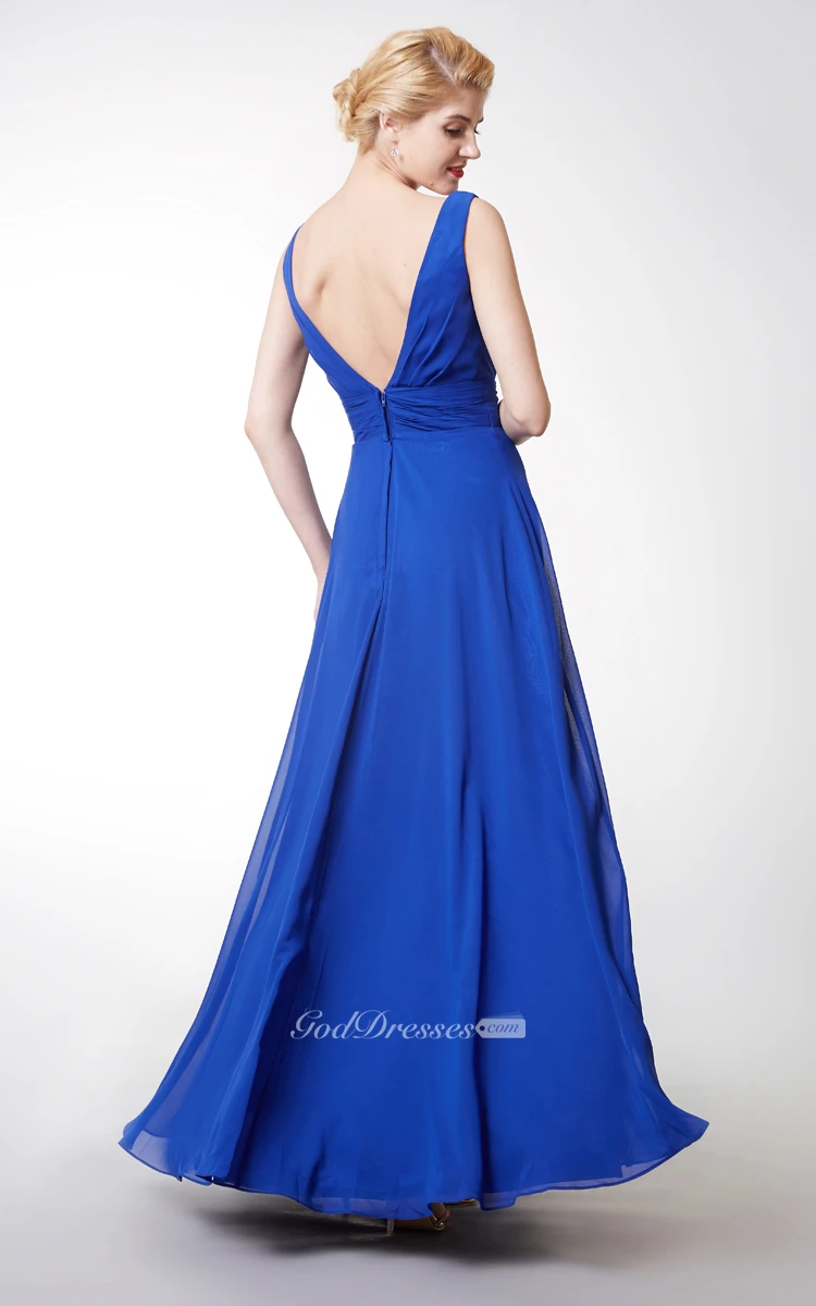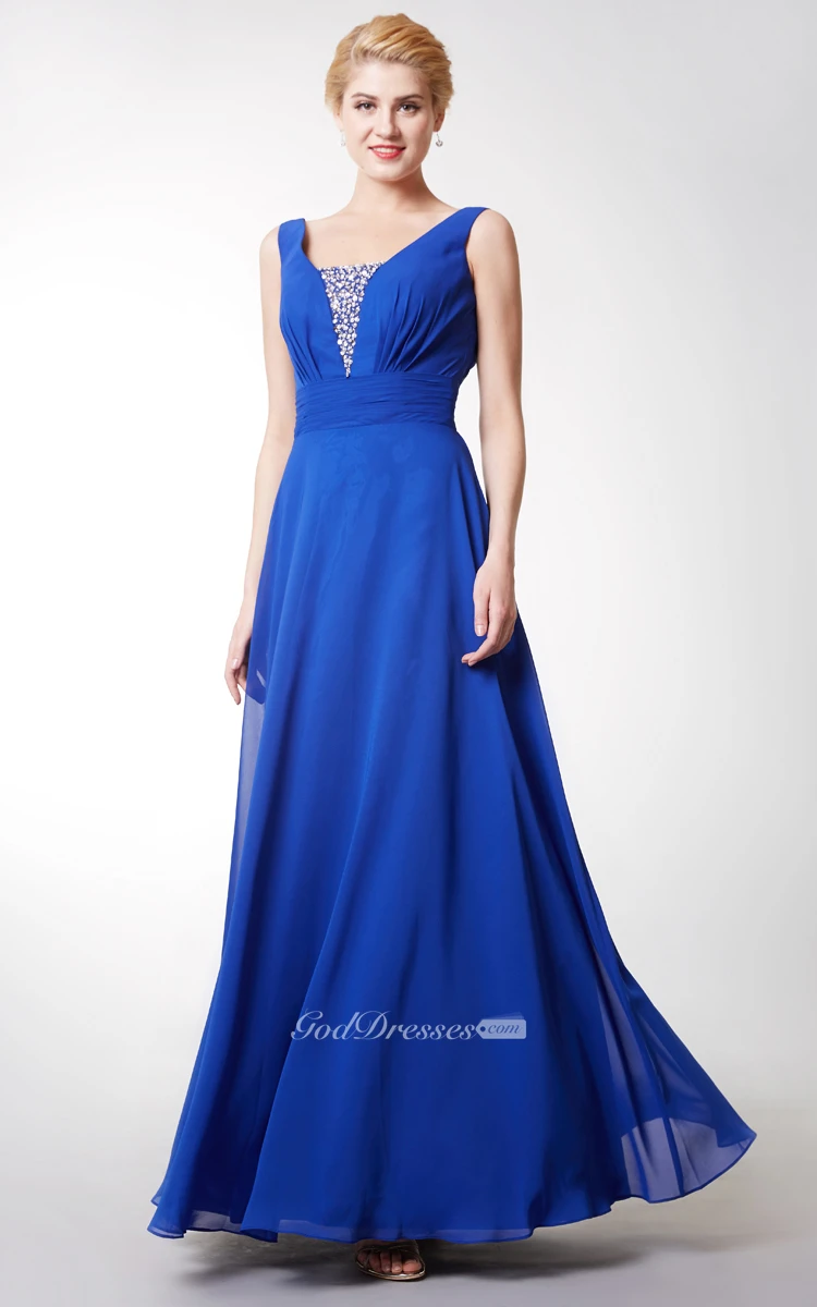 Fabulous V-neck Long Chiffon Dress With Crystal Detailing