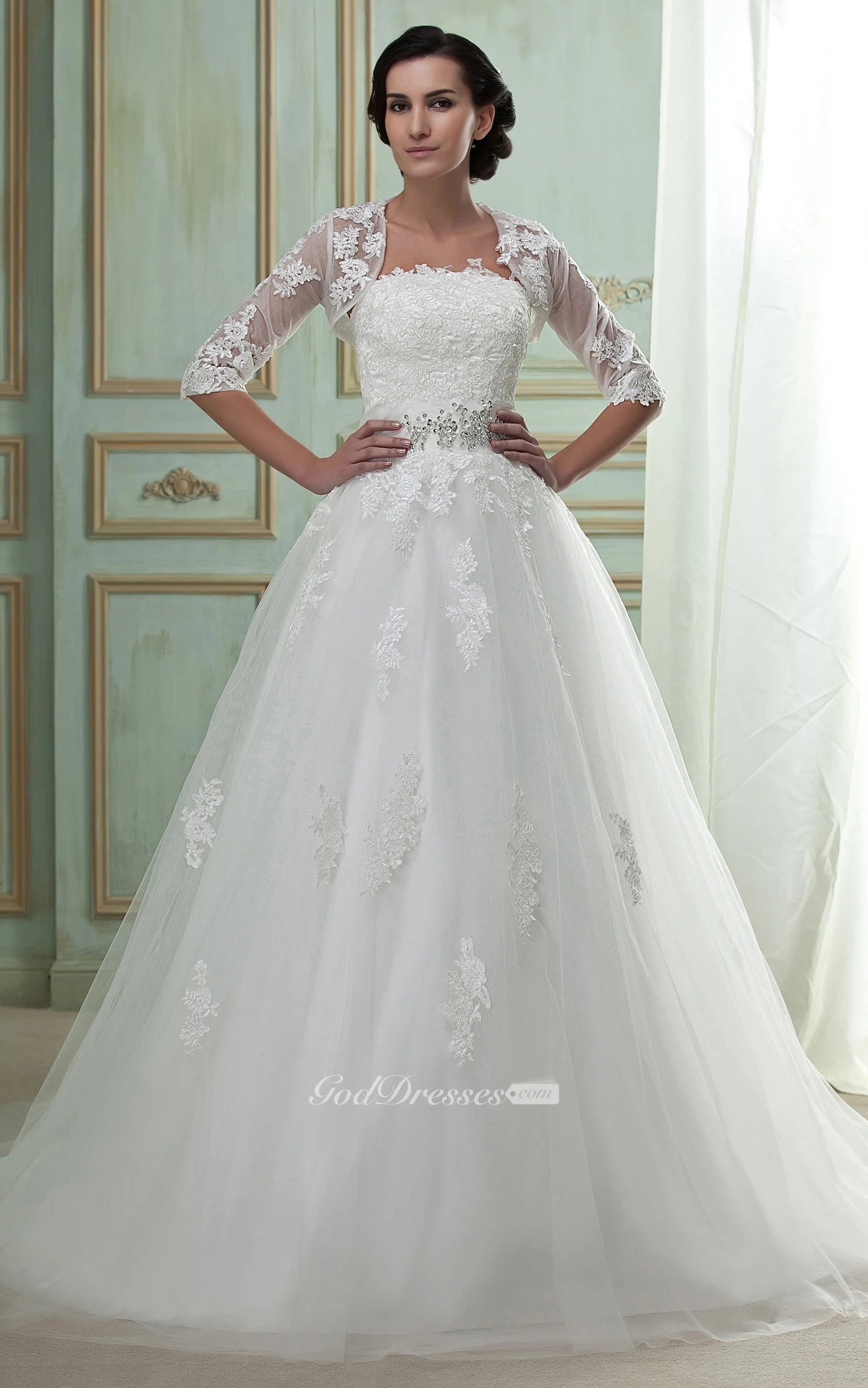 Fairy Appliqued A-Line Tulle Dress With Bolero and Beaded Waist
