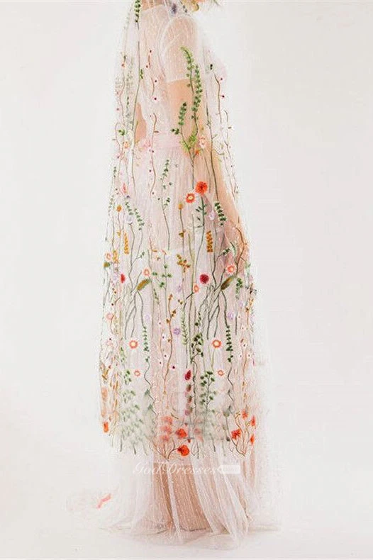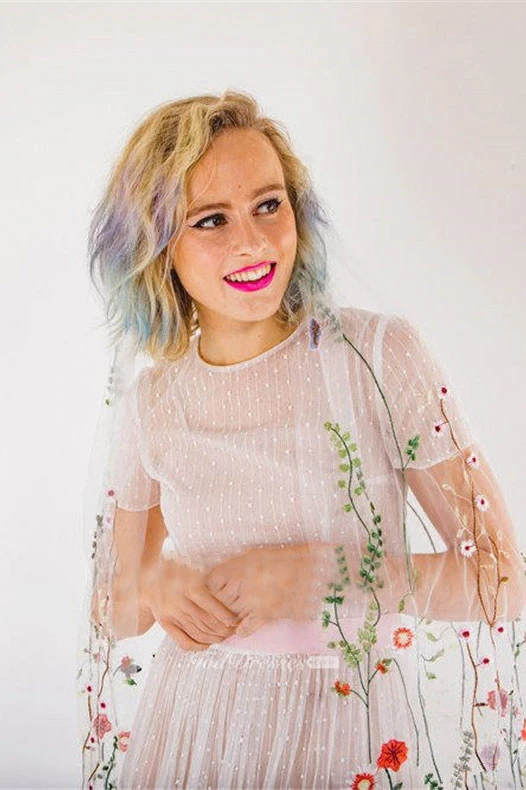 Fairy Tulle Wedding Veil With Embroidery Flower Patterns